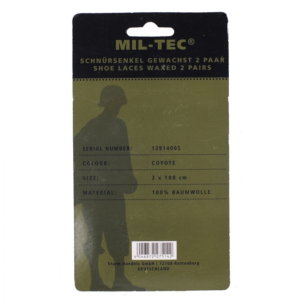 Описание Шнурки для ботинок вощеные 180 см койот МИЛ ТЕК Германия