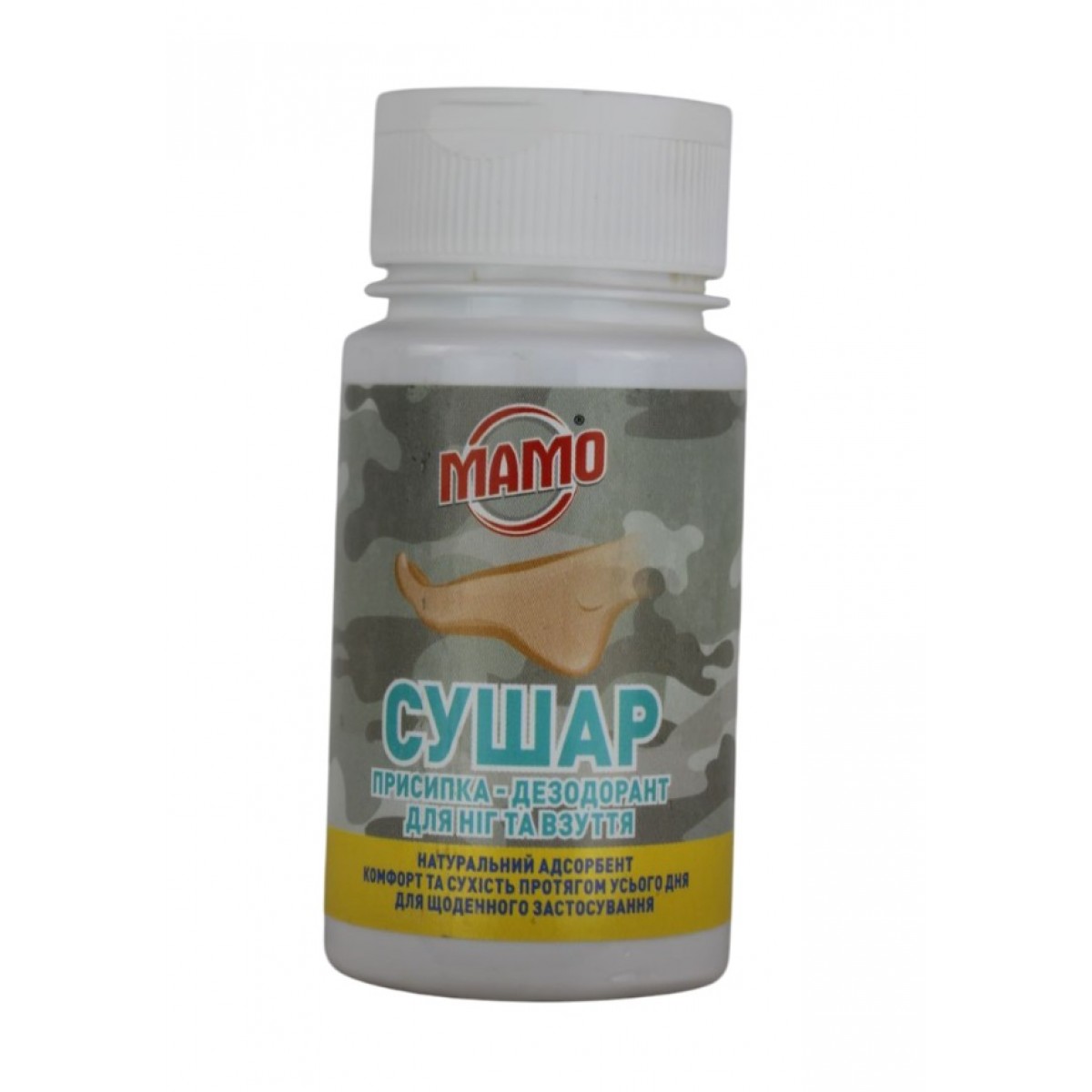 Описание Сушкарь присыпка-дезодорант МАМО 100 мл для ног и обуви Сушитель