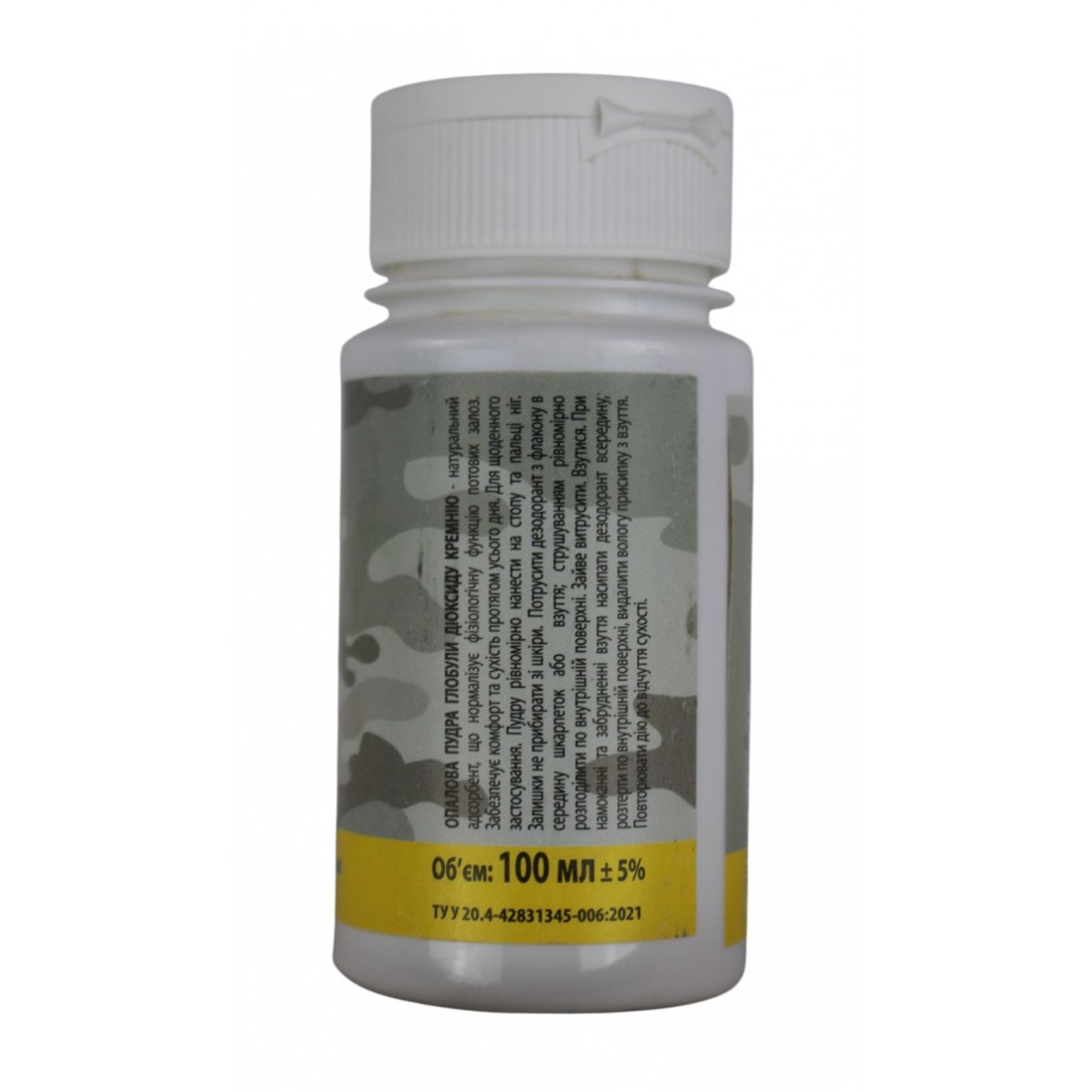 Сушитель - поглощает влагу как адсорбент, его состав обладает антибактериальными свойствами. Эффективен против гипергидроза.