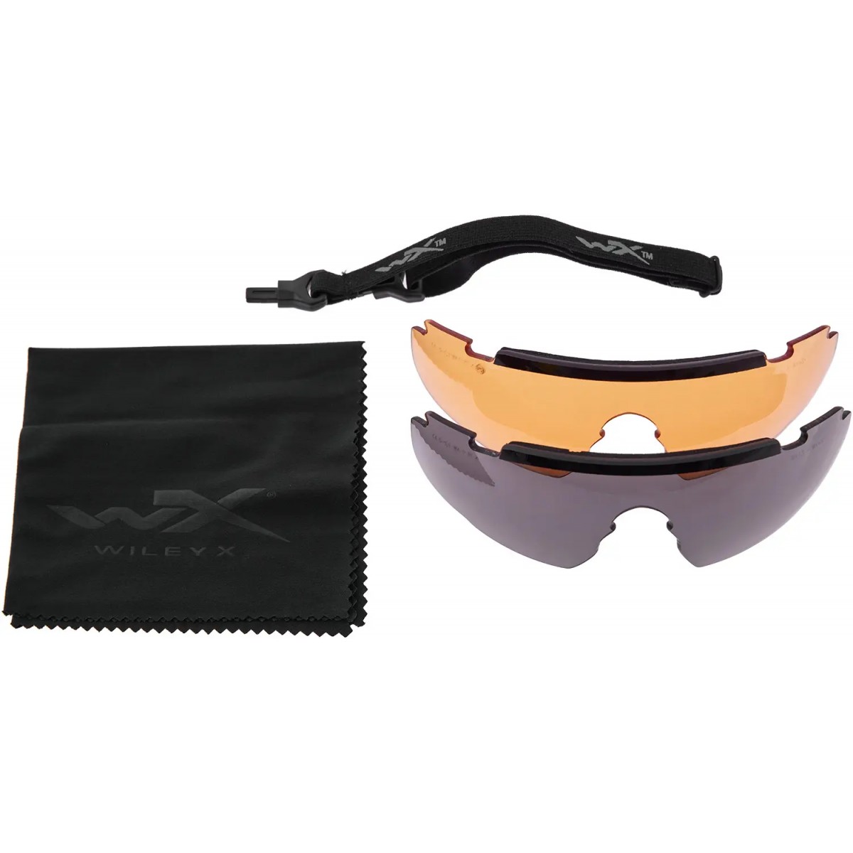 В комплект к очкам входит 3 сменные линзы темно-серого, прозрачного и оранжевого цветов.