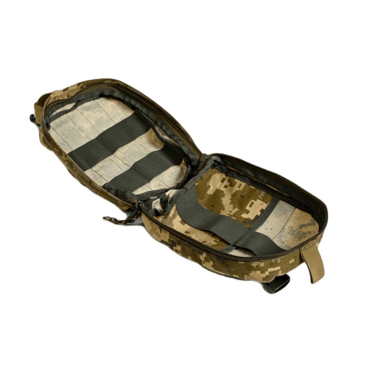 Имеет систему крепления MOLLE, которая позволяет прикрепить результат к любой части экипировки или рюкзака. Подсумок закрывается на качественный фастекс и молнию, что обеспечивает быстрый доступ к содержимому аптечки.