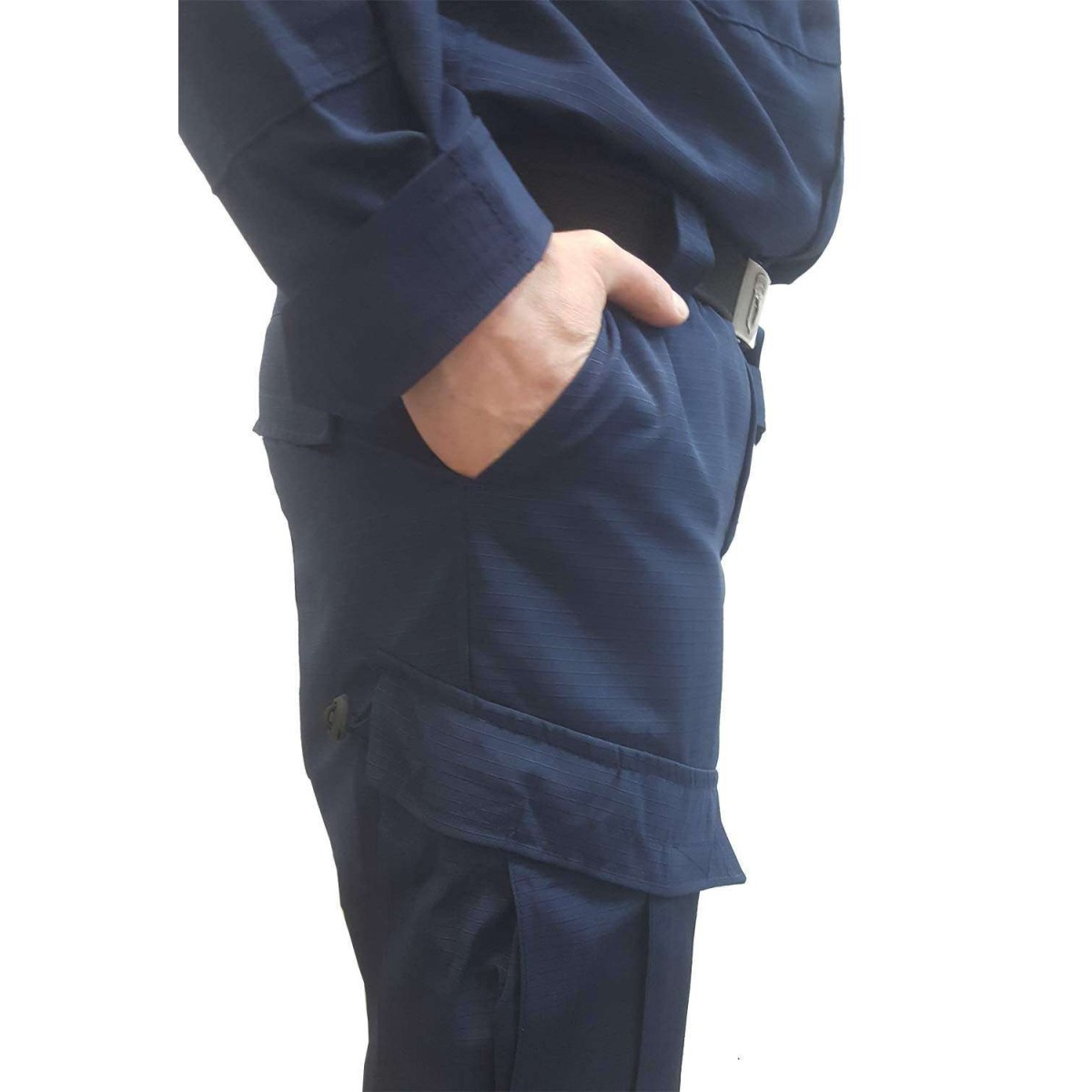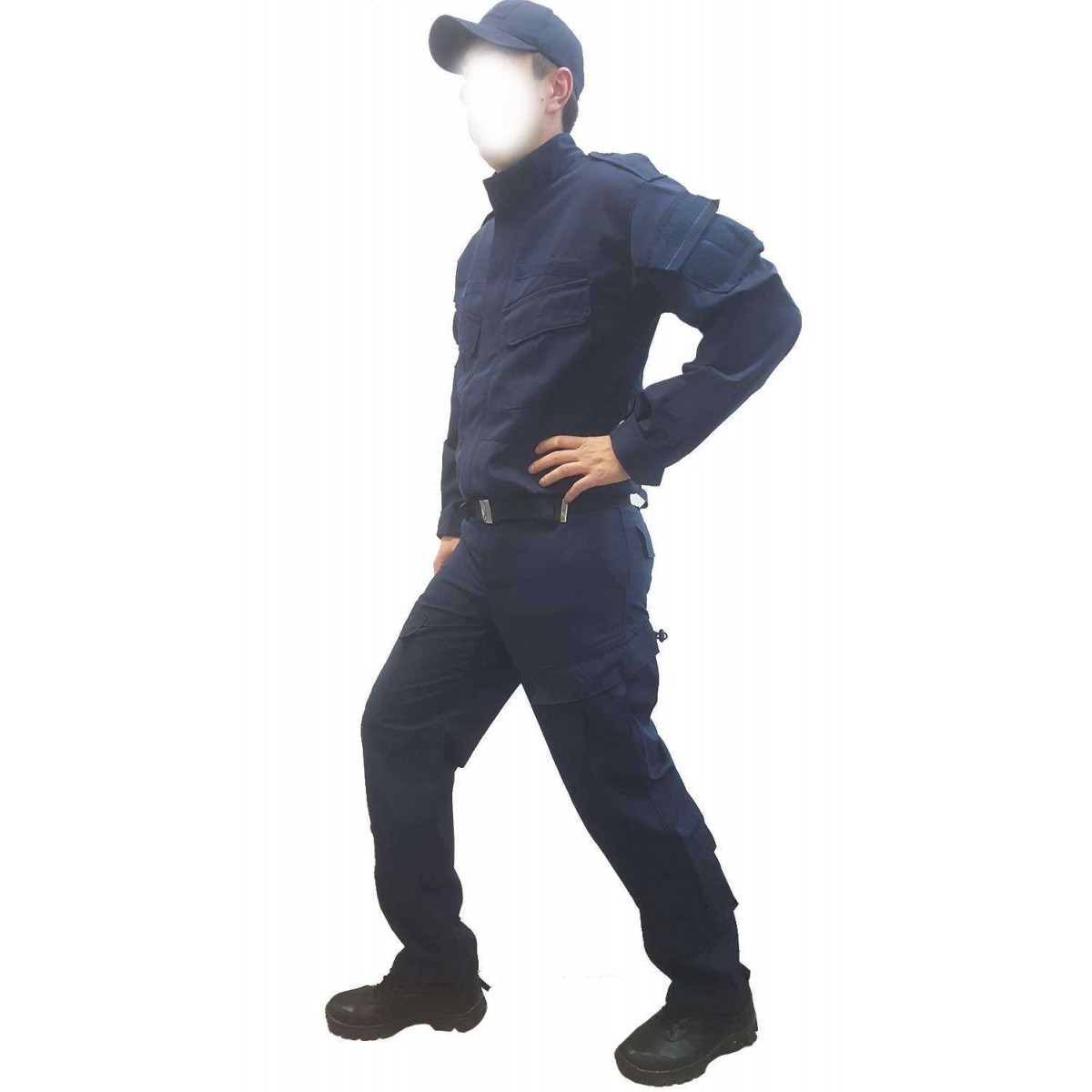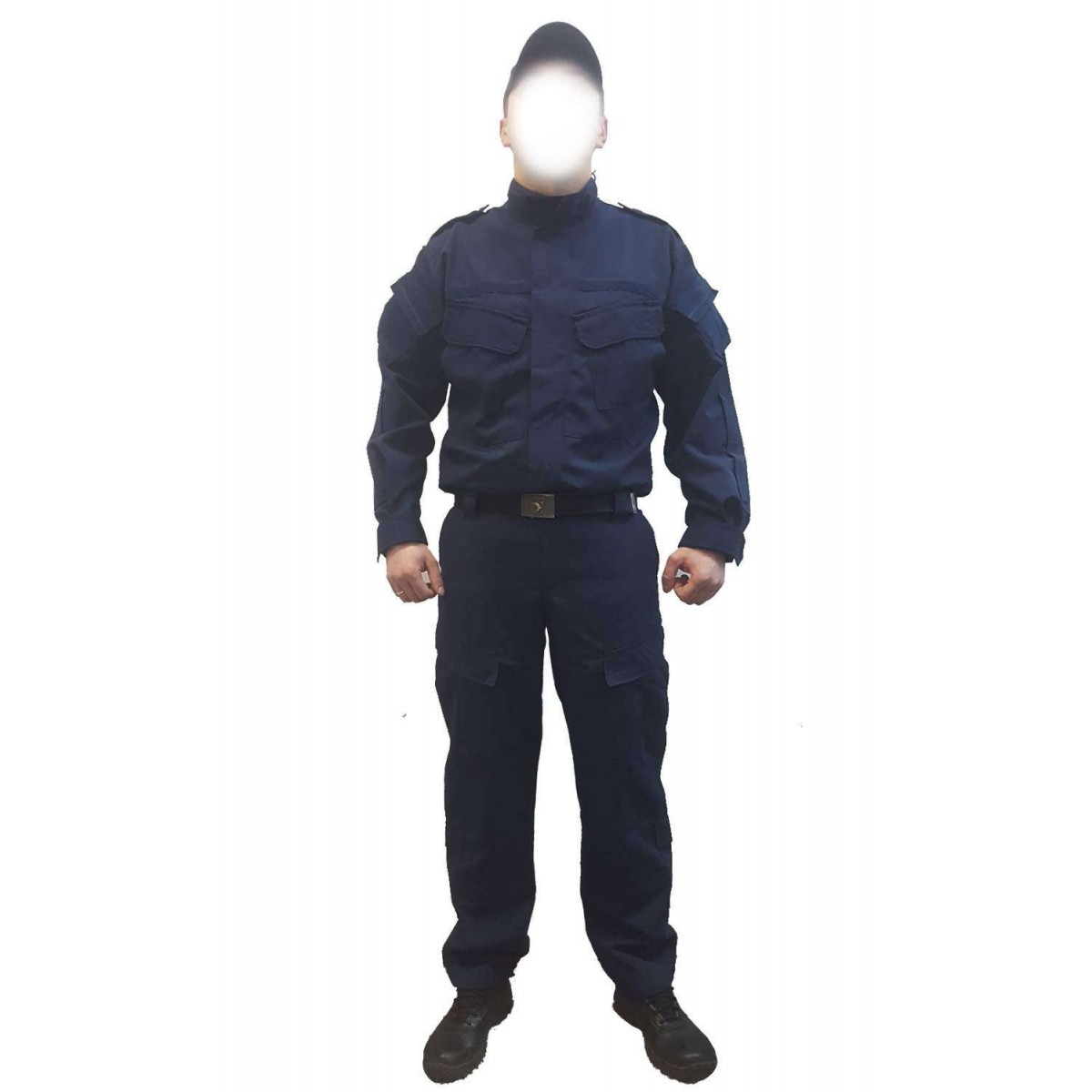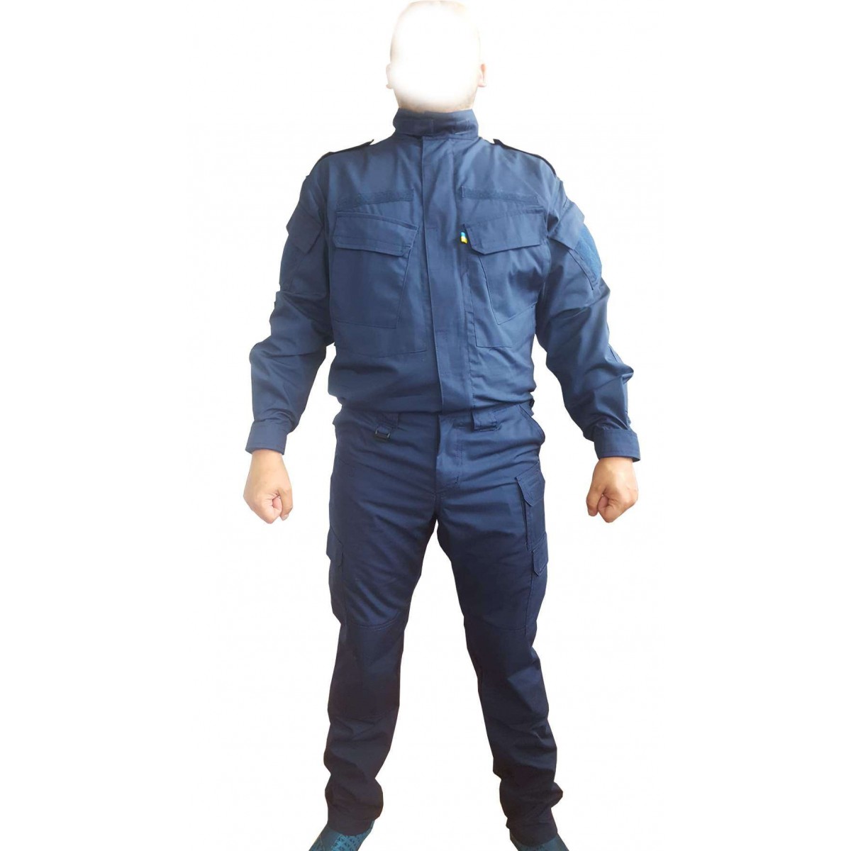 Удобный строгий крой и практичный камуфляж синего цвета отличают военную форму для охранника.