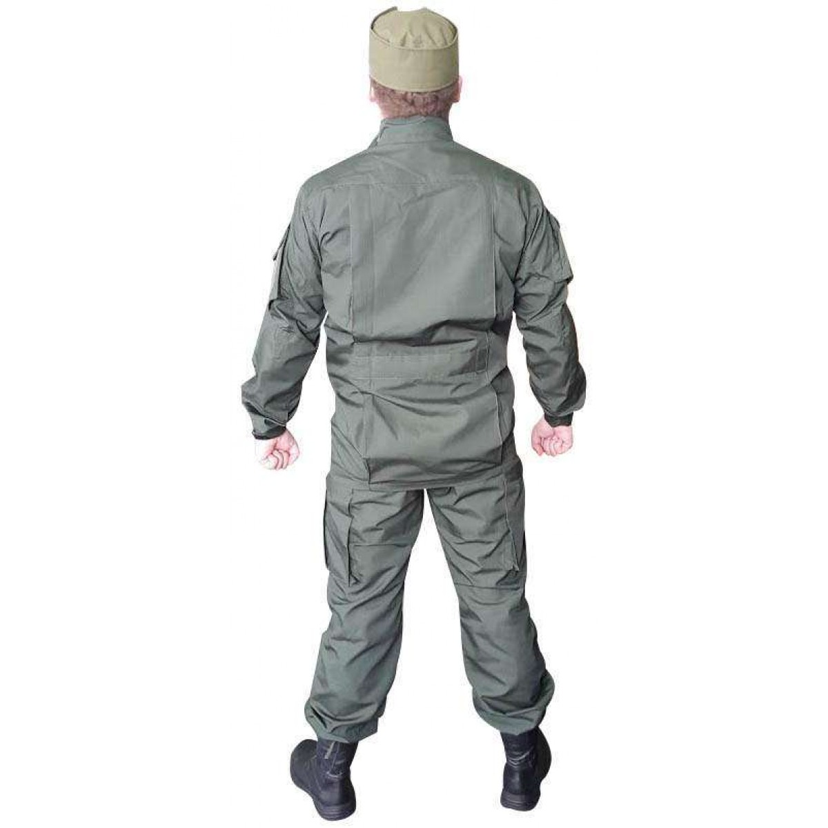 Оливковая униформа представлена в виде комплекта, состоящего из штанов и кителя.