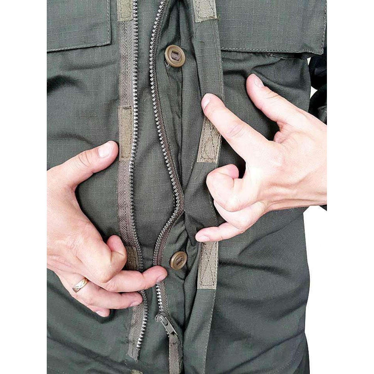 - Застежка кителя сделана в виде молнии, которая прикрывается клапаном с липучками. Также имеется пуговичная застежка.