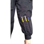 - Верхняя часть комплекта снабжена многообразием карманов: 2 нагрудных + 2 нарукавных + 2 под демпферы на локтях + мелкие карманы под пишущие принадлежности.