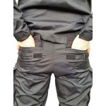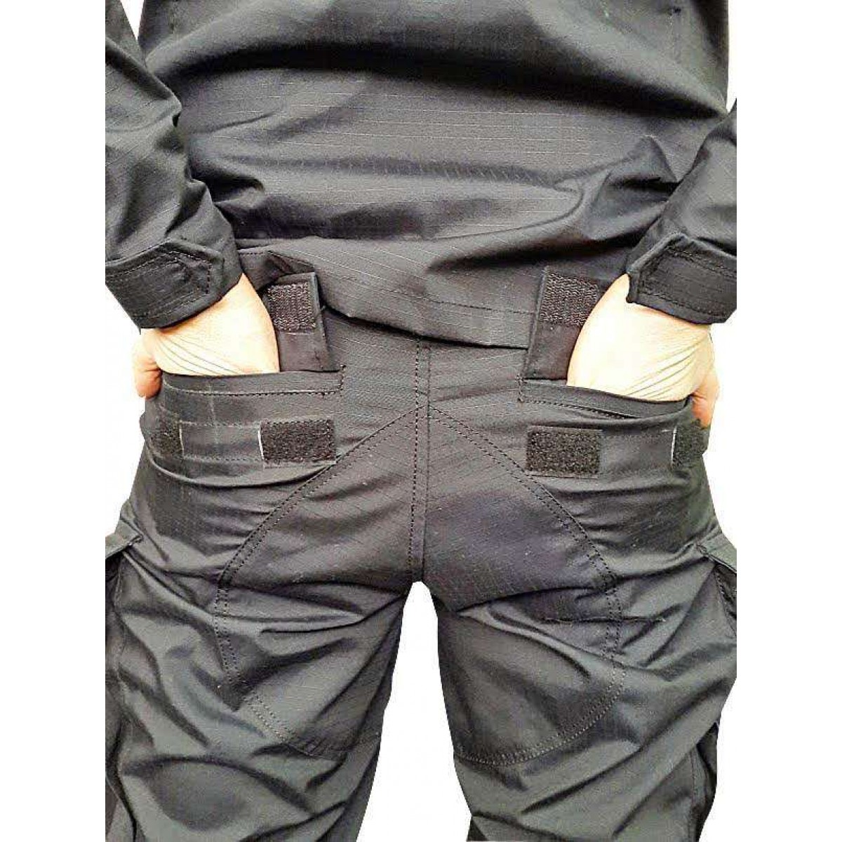 Комплект из брюк и кителя явной военной направленности в оформлении не имеет. Поэтому форма не бросается в глаза, за счет черного цвета идеальна для ночных вылазок.