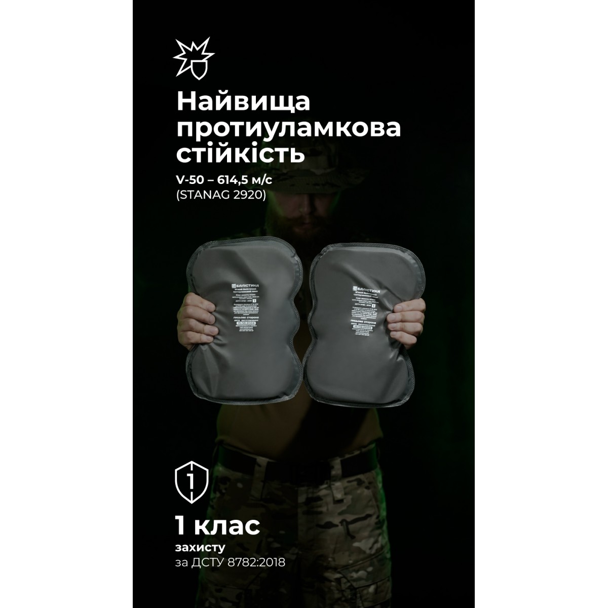 «Баллистика» разработала бронепакеты в наколенники к штанам UF PRO, которые защищают колени от осколков. ✅ Ключевые преимущества Самые высокие показатели противоосколочной стойкости: бронепакет из 36 слоев СВМПЭ держит осколки со скоростью 614,5 м/с (STANAG 2920 V50) Сырье мирового уровня: СВМПЭ от FMS (Израиль) Уменьшают запреградную травму: СВМПЭ от FMS имеет плотное перекрестное наложение волокон, что уменьшает вдавливание брони с внутренней стороны Соответствуют 1-му классу защиты по ДСТУ 8782:2018 Имеют анатомическую форму Запаяны в герметичные чехлы, которые защищают от влаги, грязи и ультрафиолета Описание товара Наши бронепакеты созданы прежде всего для защиты от осколков, которые являются наиболее распространенной угрозой на фронте. Изделия имеют самые высокие показатели противоосколочной стойкости и результаты по показателю V50 (STANAG 2920, ДСТУ 8782:2018) в своем классе. Сверхвысокомолекулярный полиэтилен (СВМПЭ), из которого они изготовлены, является легким, гибким и одновременно очень прочным материалом. Бронепакеты соответствуют 1-му классу защиты и во время испытаний выдерживают выстрел из автоматического пистолета Стечкина и пистолета Glock 17 шаром со свинцовым сердечником с расстояния 10 м. Защищают от мелких осколков и вторичных поражающих элементов – фрагментов бетона, кирпича, стекла, дерева и т. д. Имеют запреградную деформацию до 22 мм (в среднем 15 мм и меньше). Этому способствует плотное плетение волокон СВМПЭ. Это критически важно для снижения риска контузий без пробития. Полностью повторяют форму и размер наколенников, легко устанавливаются. Благодаря выверенному количеству слоев и естественной гибкости материала наколенники не сковывают движения. А наоборот, благодаря анатомическим изгибам не мешают свободной ходьбе, бегу, ползанию и т. д. Ультразвуковая герметизация гарантирует, что бронепакет не потеряет свойств под влиянием пота, дождя, грязи или прямых солнечных лучей. ℹ️ Протокол отстрела бронепакета 1-го класса защиты согласно ДСТУ (STANAG V50 – 614,5 м/с) ℹ️ Протокол отстрела бронепакета 1-го класса защиты согласно ДСТУ (8782:2018 ) ❓ Часто задаваемые вопросы Можно ли использовать бронепакет с другими наколенниками? Да, если они соответствуют по размерам этому бронепакету. Но совместимость не гарантирована. Имеет ли этот бронепакет срок годности? Теряет ли он свои характеристики со временем при хранении в домашних условиях (например, не под солнцем и не под дождем)? Наши бронепакеты герметично запаяны. Если герметичность не нарушена, а условия хранения не экстремальные, бронепакет сохраняет свои свойства более 10 лет. Можно ли дальше использовать баллистический пакет, если была нарушена герметичность упаковки? Это крайне нежелательно. Если вода попадет между слоями полиэтилена, изделие может потерять свои защитные свойства. В результате гидроудара вода раздвигает волокна, что увеличивает запреградную травму и даже создает риск пробития. Поэтому обязательно проверяйте герметичность упаковки бронепакета. В случае ее повреждения вы можете отправить бронепакет нам – и мы бесплатно восстановим герметичность упаковки. Можно ли дальше использовать баллистический пакет, если он был поражен? «Баллистика» не рекомендует использовать баллистический пакет в случае поражения. Это снижает эффективную площадь защиты и увеличив