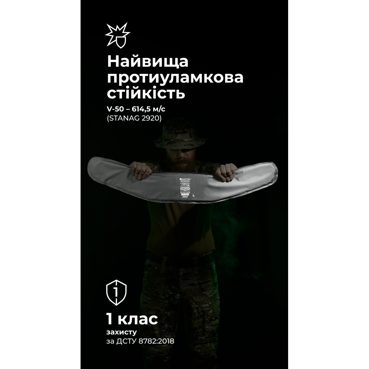 Противоосколочный бронепакет создан специально для AVS Low Profile Belt в размере L от американского бренда Crye Precision. Устанавливается внутрь пояса и обеспечивает защиту поясницы и талии. ✅ Ключевые преимущества Самые высокие показатели противоосколочной стойкости: бронепакет из 36 слоев СВМПЭ держит осколки со скоростью 614,5 м/с (STANAG 2920 V50) Сырье мирового уровня: СВМПЭ от FMS (Израиль) Уменьшает запреградную травму: СВМПЭ от FMS имеет плотное перекрестное наложение волокон, что уменьшает вдавливание брони с внутренней стороны Соответствует 1-му классу защиты по ДСТУ 8782:2018 Запаян в герметичный чехол, который защищает от влаги, грязи и ультрафиолета Описание товара Наши бронепакеты созданы прежде всего для защиты от осколков, которые являются наиболее распространенной угрозой на фронте. Изделия имеют самые высокие показатели противоосколочной стойкости и результаты по показателю V50 (STANAG 2920, ДСТУ 8782:2018) в своем классе. Сверхвысокомолекулярный полиэтилен (СВМПЭ), из которого они изготовлены, является легким, гибким и одновременно очень прочным материалом. Бронепакет устойчив к поражению пулями калибра 9×18 мм (9 мм Makarov), 9×19 мм (9 мм Luger, 9 мм Parabellum), 9×19 (мм), что соответствует 1-му классу защиты по ДСТУ 8782:2018. Во время испытаний выдерживает выстрел из автоматического пистолета Стечкина и пистолета Glock 17 шаром со свинцовым сердечником с расстояния 10 м. Защищает от мелких осколков и вторичных поражающих элементов – фрагментов бетона, кирпича, стекла, дерева и т. д. Имеет запреградную деформацию до 22 мм (в среднем 15 мм и меньше). Этому способствует плотное плетение волокон СВМПЭ. Это критически важно для снижения риска контузий без пробития. Ультразвуковая герметизация гарантирует, что бронепакет не потеряет свойства под влиянием пота, дождя, грязи или прямых солнечных лучей. Продуманное количество слоев и естественная гибкость материала способствуют тому, что бронепакет адаптируется к форме тела и не мешает в бою. ℹ️ Протокол отстрела бронепакета 1-го класса защиты согласно ДСТУ (STANAG V50 – 614,5 м/с) ℹ️ Протокол отстрела бронепакета 1-го класса защиты согласно ДСТУ (8782:2018 ) ❓ Часто задаваемые вопросы Какой смысл ставить бронепакет в РПС, если есть плитоноска? Плитоноска защищает только жизненно важные органы грудной клетки. А бронепакет в РПС покрывает дополнительную зону (талия, бока, поясница), которая также часто подвергается осколочным ранениям. Подходит ли этот бронепакет к другим поясам, кроме AVS Low Profile Belt? Нет, он специально разработан под форму и размер пояса AVS. Имеет ли этот бронепакет срок годности? Утрачивает ли характеристики со временем при хранении в домашних условиях, но не под солнцем и не под дождем? Наши бронепакеты герметично запаяны. Если герметичность не нарушена, а условия хранения не экстремальны, бронепакет сохраняет свои свойства более 10 лет.Отзывы о Баллистический пакет под РПС Crye Precision (1 класс | L | 550 г | НВМПЭ ✡ Израиль) ТМ Баллистика