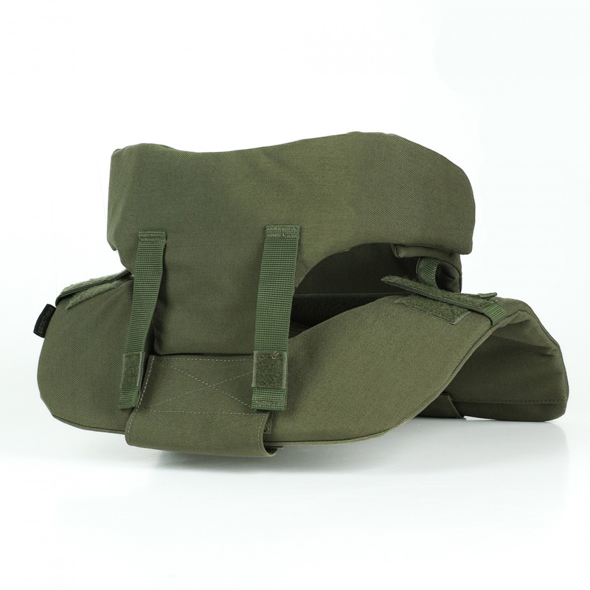 Модуль обеспечивает эффективную защиту шеи и ключиц от осколочных ранений. Конструкция состоит из четырех соединяемых между собой деталей, что позволяет адаптировать пелерину под различные размеры и телосложение. Как крепить «Пелерину» ? Особенности товара Модуль защиты шеи отличается следующими характеристиками: Состоит из четырех элементов, которые соединяются между собой и крепятся к плитоноске с помощью велкро. Горжетка, которая ложится на плечи и, в частности, прикрывает ключицы, состоит из двух частей, которые спереди и сзади скреплены лоскутками кордуры с велкро. Промежуток между концами этих частей можно регулировать, чтобы подогнать к комплекции бойца. Перед и задняя спинка защищают шею. Они крепятся друг к другу по бокам и также регулируются по обхвату. Задняя спинка фиксируется к горжетке с помощью велкро-хлястиков. Рядом с ними помещены хлястики, которые предназначены для крепления в плечевых лямках плитоноски. На переде нашиты еще два хлястика с липучкой, которые шнуруются к велкро-панели с ячейками MOLLE на передней плите. Подходит для плитоносок серий M3 Pro/Lite. Баллистический пакет, который соответствует 1-му классу по ДСТУ 8782:2018, имеет показатель NATO STANAG 2920 V-50 = 614,5 м/c. Протокол отстрела бронепакета 1-го класса согласно ДСТУ (STANAG V-50 – 614,5 м/c). Технические характеристики Материал: Cordura 1000D. Стропа: полиамид, 2,5 см. Липучка: Velcro. Класс защиты: 1-й. Площадь защиты (сумма элементов): 17,5 дм2. Вес (с бронезащитой): 1362 г.Основные характеристики Защита шеи (Пелерина) с баллистической защитой 1 класса (Олива)