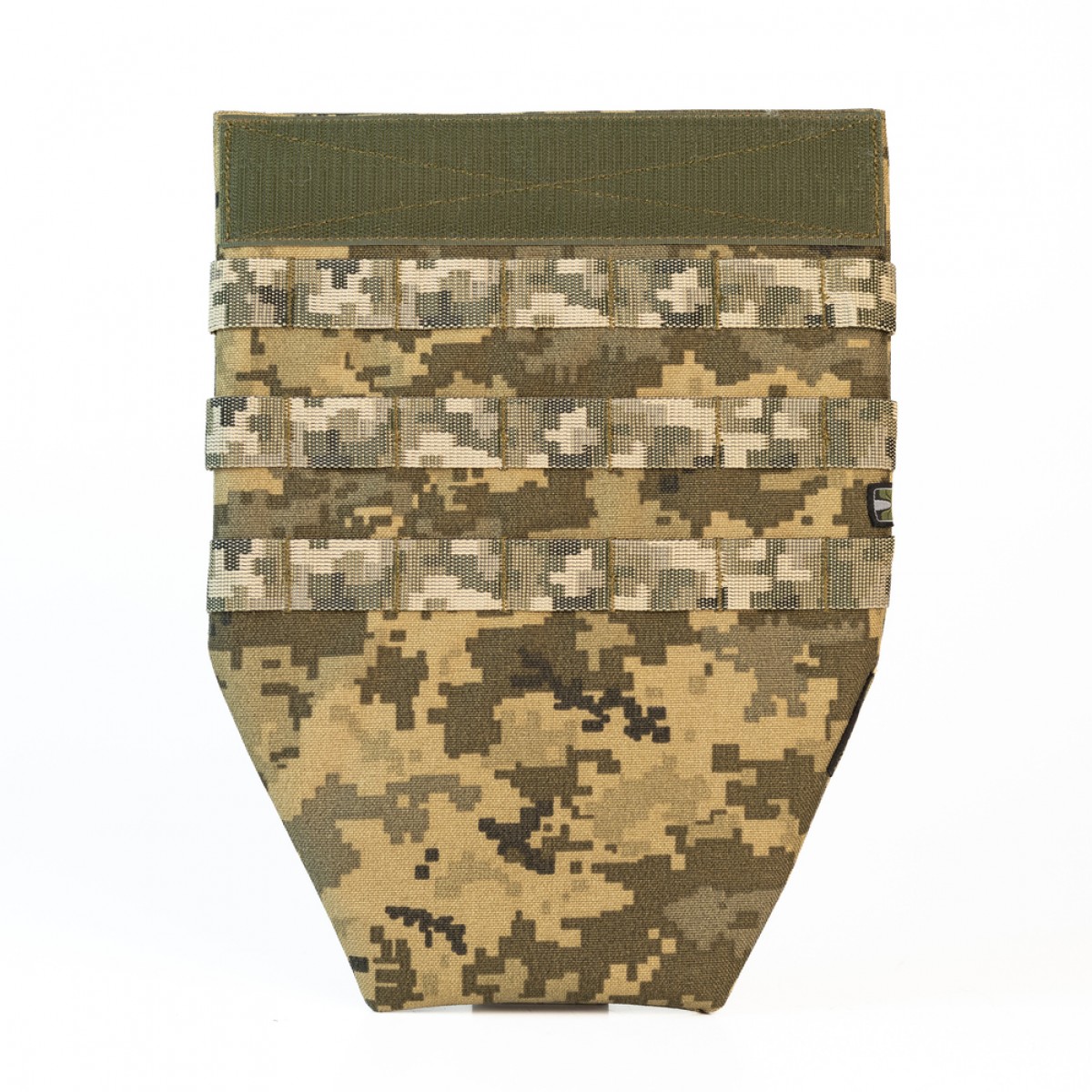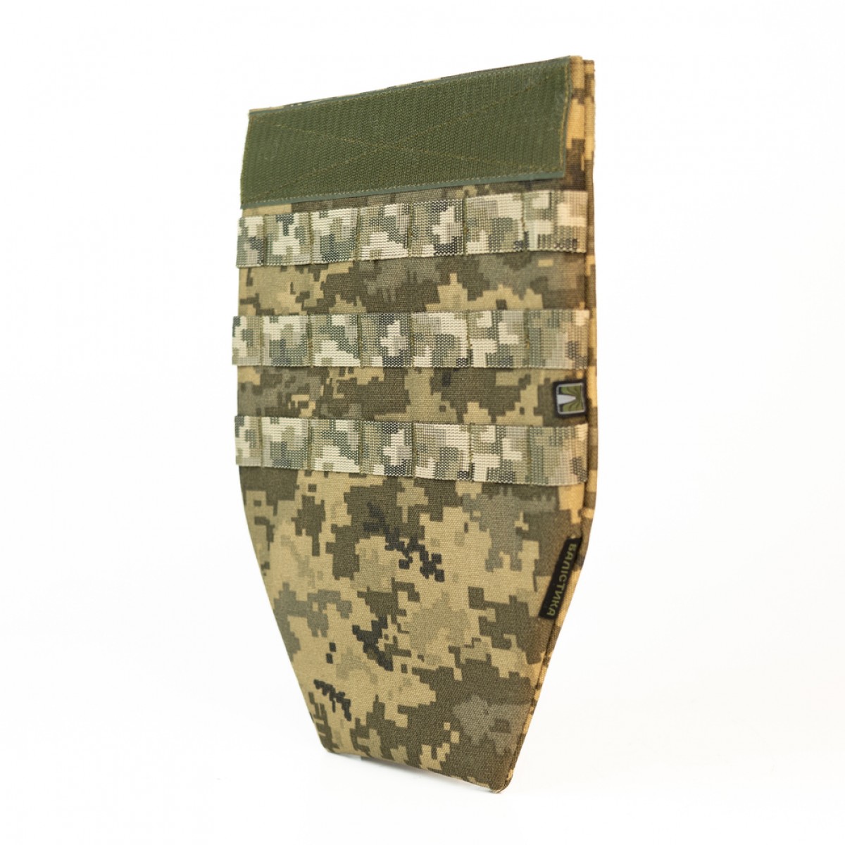 Фартук с баллистическим пакетом является дополнительным модулем защиты, который совместим с плитоносками. Он прикрывает от осколков абдоминальную и паховую зону. Бронепакет, изготовленный из СВМПЭ, отличается мягкостью и легкостью, что способствует свободе движений и не мешает при изменении положения тела. Особенности товара Противоосколочный фартук (S/M) создан под плитоноски серий М2 и М3. Однако может подойти к любым другим плитоноскам, которые обеспечивают доступ к плите с нижнего края и совпадают по конфигурации липучки. К другим важным качествам изделия относятся следующие: Комплектуется баллистическим пакетом из СВМПЭ 1-го класса защиты по ДСТУ 8782:2018 (эквивалент NATO STANAG 2920 V-50 614,5 м/с ± 40 м/с). Бронепакет имеет 36 слоев СВМПЭ и выдерживает выстрел из автоматического пистолета Стечкина с 5 м. Внешний чехол отшит из Cordura 1000D – очень прочной ткани, устойчивой к механическим повреждениям, трению, влаге. Внутри него бронепакет крепится на дополнительную липучку, которая предотвращает любые его смещения. Изделие вставляется в клапан плитоноски М2, M3 Pro/Lite и фиксируется с помощью сплошной велкро-панели. Независимо от веса плит и количества подсумков (например «Ладника») идеально становится в отверстие для плиты. Можно использовать в сочетании с защитой поясницы. Фартук закрепляется в велкро-клапане модуля защиты поясницы, который, в свою очередь, вставляется в велкро-клапан плитоноски. Тем самым можно увеличить длину напашника и общую площадь защиты. Спереди нашиты три ряда ячеек MOLLE, которые позволяют повесить несколько небольших подсумков. Размер S/M подойдет бойцам ростом до 170 см. Но это индивидуально – изделие должно подбираться в соответствии с задачами и параметрами плитоноски. Благодаря оптимальной длине и скошенным нижним углам фартук предоставляет достаточно пространства для движения, не мешает при ходьбе или беге. Протокол отстрела бронепакетов 1-го класса согласно ДСТУ (STANAG V-50 – 614,5 м/c). Технические характеристики Материал: Cordura 500D/1000D. Стропа: полиамид, 2,5 см. Липучка: Velcro. Длина: 31 см (из них 5 см – это липучка). Ширина: 24 см. Толщина бронепакета: 0,8 см. Вес: 421 г.Основные характеристики Укороченный противоосколочный фартук для плитоноски с бронепакетом 1 класса защиты (размер S-M) (ММ-14)