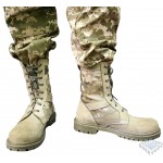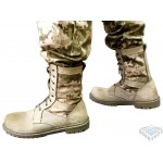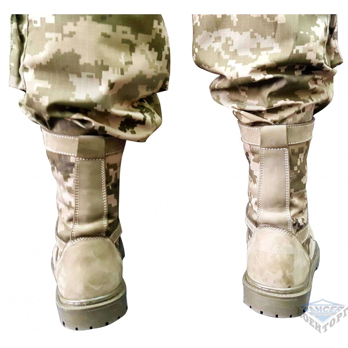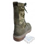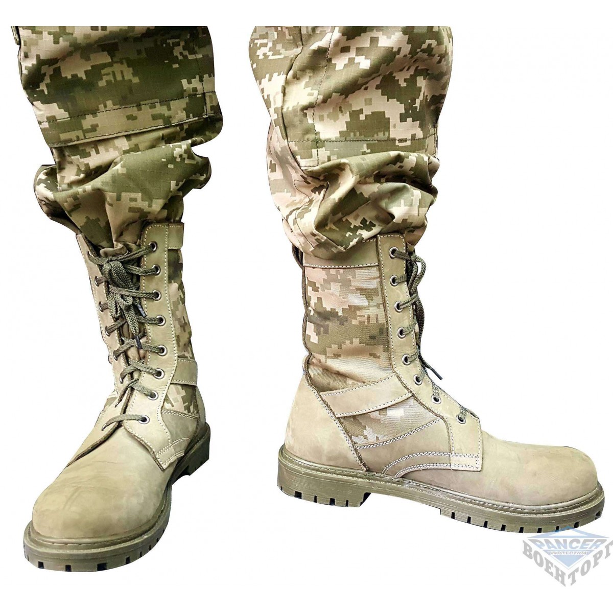 Летние берцы из натуральной воловьей кожи, прошиты двойным слоем, подошва из полиуретана, с нескользящим протектором, со специальными камуфляжными вставками из рип-стопа. Вставка обеспечивает лучшую вентиляцию, благодаря чему в жаркое время года нога не так потеет. Для лучшей маскировки вставки сделаны из камуфляжной ткани расцветки новой украинской цифры.
