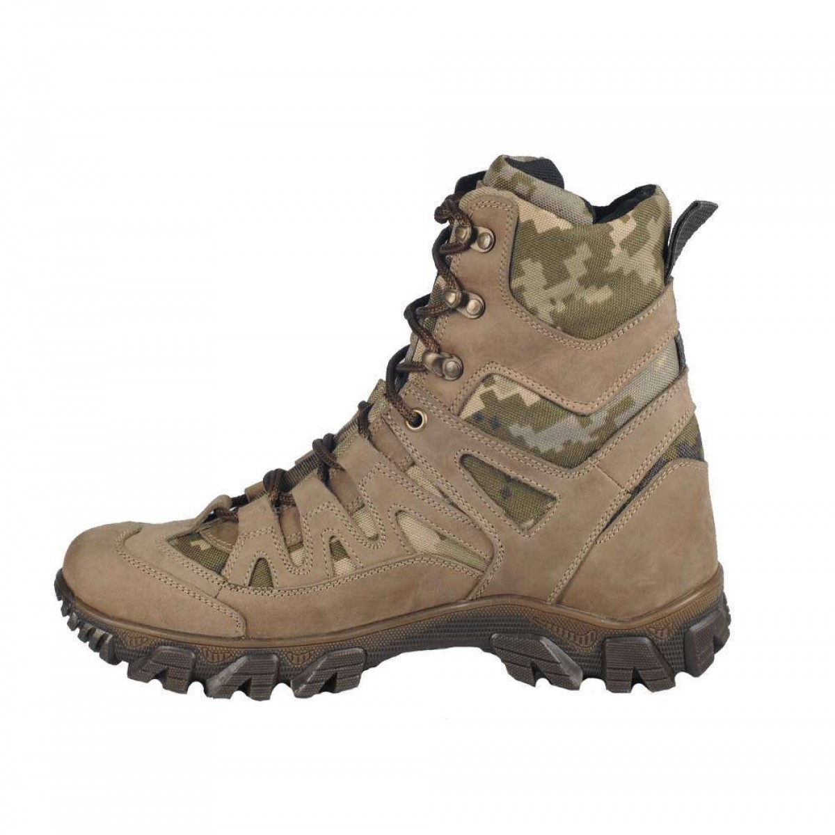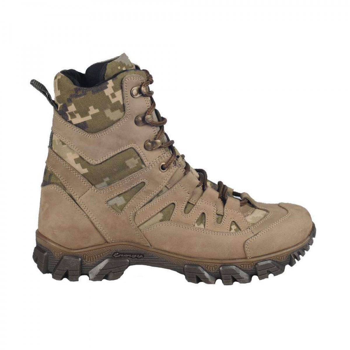 Верх ботинок — комбинированный, с высоким берцем. Основа - натуральная кожа с водоотталкивающей пропиткой, иными словами - гидрофобный нубук. Вставки - из ММ14 кордуры плотностью 1000D.