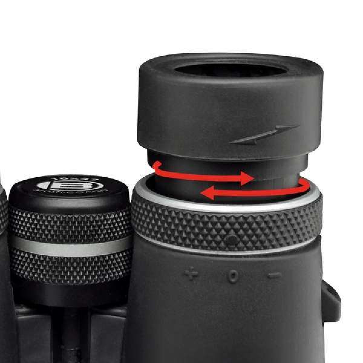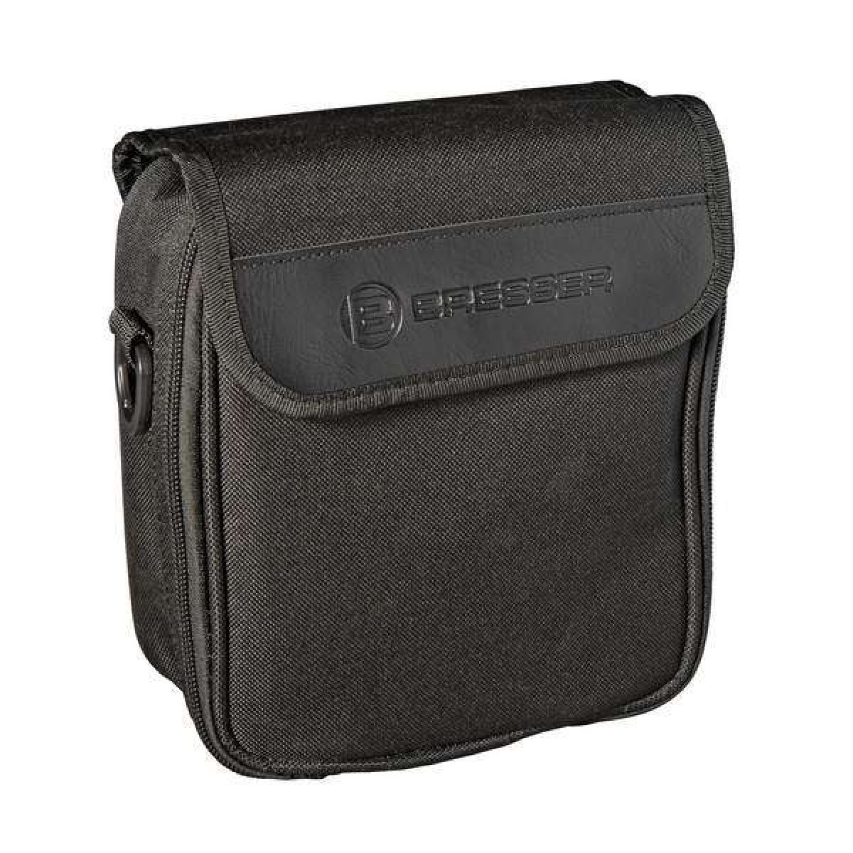 Bresser S-Series 8x42 одновременно и легкий и удобный для захвата одной рукой и надежный, благодаря более жесткой двухшарнирной конструкции. Стоит отметить также и крышки объективов, прикрепленные поясками к биноклю, и рифленую накатку на диоптрийном кольце и колесе фокусировки, и сам дизайн бинокля, относящий эту модель по внешнему исполнению к более дорогой оптике. Сам бинокль довольно легкий, он укладывается в удобную сумку, закрывающуюся на молнии и на текстильной застежке Velcro, которую можно зафиксировать на поясном ремне или носить на шее.