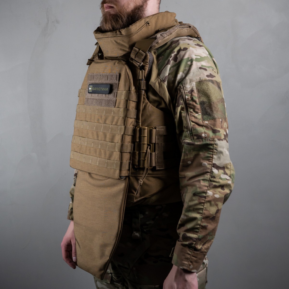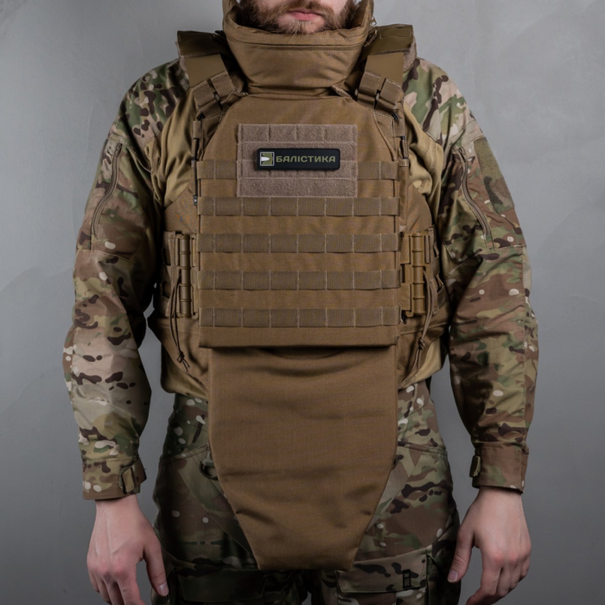 Бронежилет «Сармат» – это высокотехнологичное средство индивидуальной защиты от украинского производителя. Он мобильный, удобный и адаптирован к требованиям современной войны благодаря противодействию осколкам. Передовые материалы и инновационные производственные решения обеспечивают большую площадь защиты (58,5 дм2) и минимальный вес относительно габаритов (5,25 кг без бронепластин). «Сармат» пригоден для различных типов ведения штурмовых и боевых действий в условиях окопной и позиционной войны. Он позволяет сохранять высокую маневренность, отличается меньшей утомляемостью. А благодаря возможности установить бронеплиты разного класса защиты бронежилет обеспечивает адаптивность к угрозам, с которыми может столкнуться боец на поле боя. Универсальность защиты Подходит для различных родов войск, таких как: Пехота: бойцы на передовой могут беспрепятственно маневрировать и комфортно вести огонь как из легкого, так и из тяжелого стрелкового оружия, имея при этом надежную защиту. Артиллерия: бронежилет станет незаменимым элементом экипировки для артиллеристов, которые находятся на передовой и нуждаются в защите от элементов поражения и осколков. Саперы: бронежилет подходит для военных специалистов по разминированию позиций. Ведь обеспечивает эффективную защиту от осколков и при этом сохраняет необходимую подвижность для выполнения точных технических задач. Силы специальных операций: позволяет выполнять задачи в условиях высокой динамики боевых действий, включая штурмовые и контрштурмовые операции. Мобильно-огневые группы: воины могут использовать бронежилет во время постоянного пребывания на огневых позициях, поскольку он не ограничивает движений и позволяет быстро реагировать на изменение боевой обстановки. Основные преимущества бронежилета При выборе бронежилета важно учитывать не только его защитные свойства, но и комфорт, мобильность и функциональность. Вот главные особенности, которые делают этот бронежилет оптимальным выбором для военных и спецназовцев: Легкость и удобство. Благодаря использованию современных материалов бронежилет имеет минимальный вес (5,25 кг), не ограничивает движений и обеспечивает комфортное ношение в течение длительного времени. Экстренный сброс. Бронежилет «Сармат» оснащен запатентованной системой экстренного сброса, которая позволяет легко и быстро снять его в случае необходимости. Оптимальная площадь защиты. Бронежилет защищает не только сердце и легкие, но и шею и пах. Модульная система. Она дает возможность добавить защиту плеч и бедер для большей баллистической защиты. Высококачественные материалы. Использование прочных и износостойких материалов (Cordura 1000D, полиамидные стропы, фурнитура из прочного пластика, 3D-сетка для вентиляции и т. д.). Воротник и фартук. Имеют удобную систему крепления/разъединения. Воротник является цельнокроеным, не имеет швов в месте сгибания и крепится при помощи липучки на перехлест к мягкой броне жилета. Фартук регулируется по высоте и в случае необходимости прячется под бронеплиту. Компоненты бронежилета 1. Чехол бронежилета: Совместим с бронеплитами – подходит для плит размером 27×33 см (SAPI/ESAPI L) и толщиной до 3 см. Имеет систему MOLLE – позволяет крепить дополнительное снаряжение, например подсумки, карманы для боковой защиты, рюкзак под г