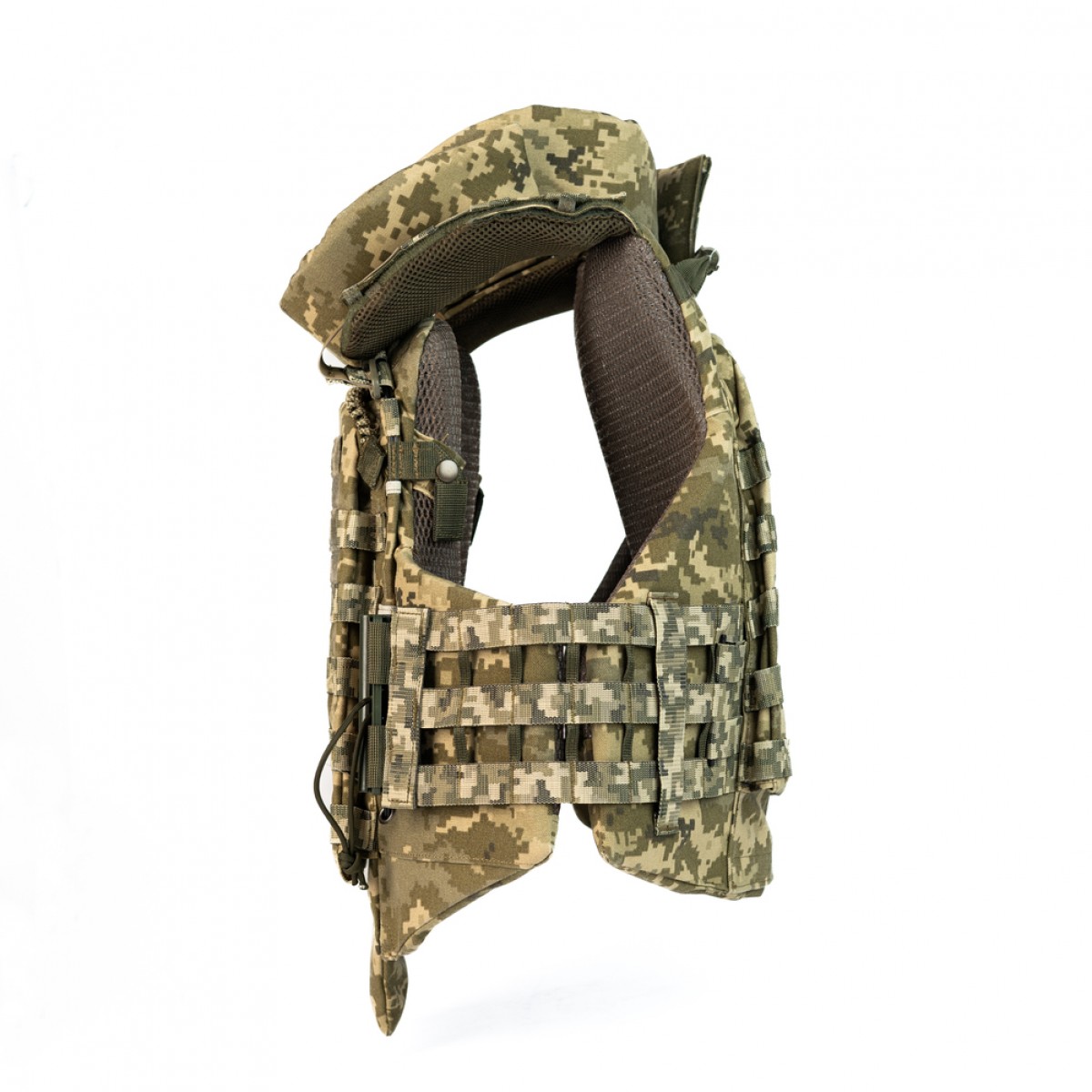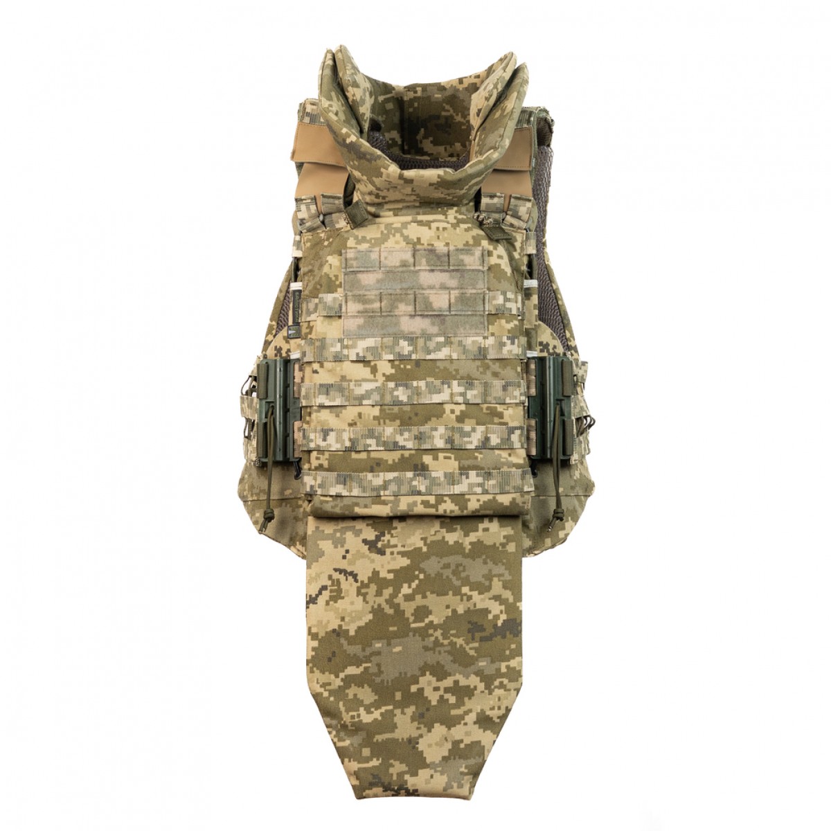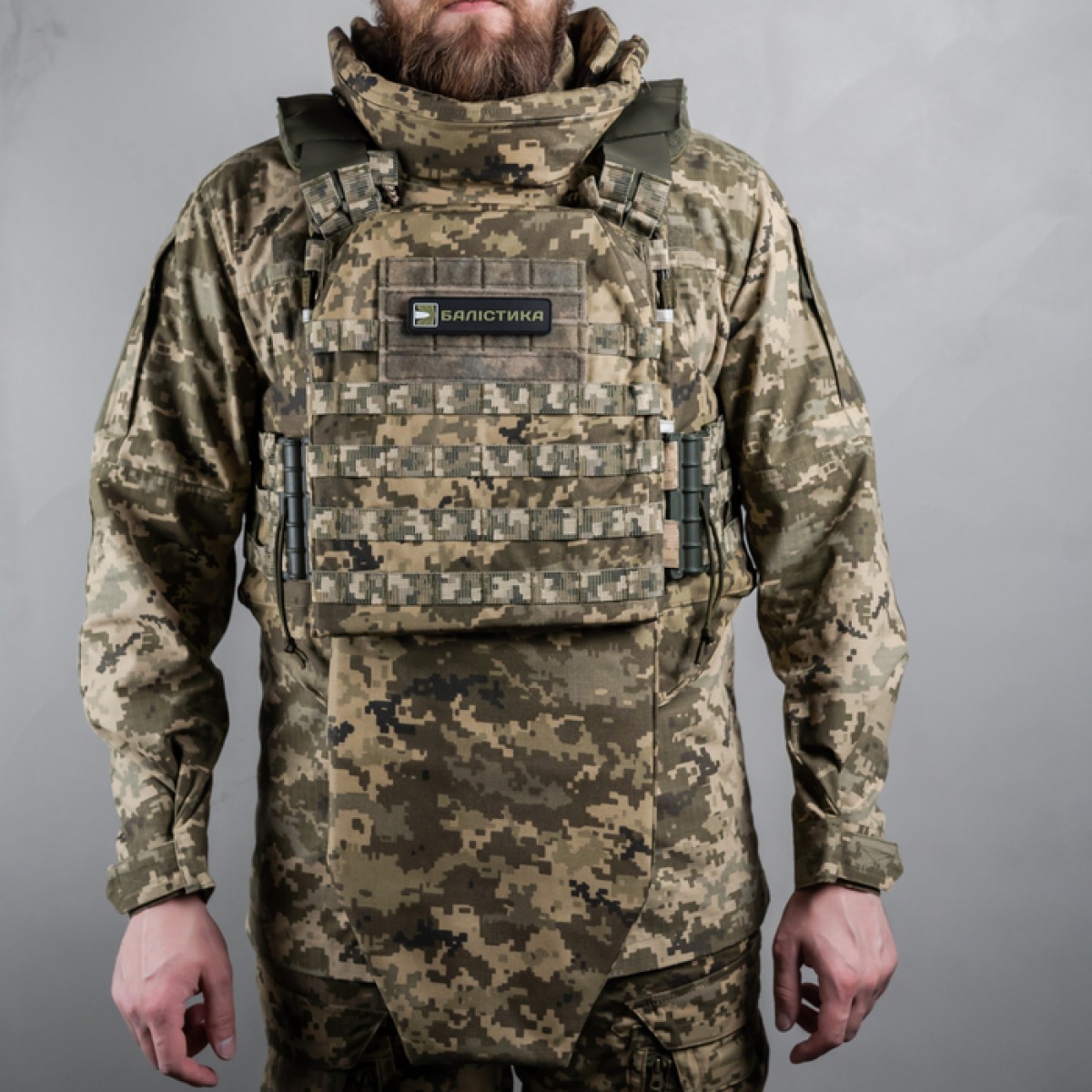 Бронежилет «Сармат» – это высокотехнологичное средство индивидуальной защиты от украинского производителя. Он мобильный, удобный и адаптирован к требованиям современной войны благодаря противодействию осколкам. Передовые материалы и инновационные производственные решения обеспечивают большую площадь защиты (58,5 дм2) и минимальный вес относительно габаритов (5,25 кг без бронепластин). «Сармат» пригоден для различных типов ведения штурмовых и боевых действий в условиях окопной и позиционной войны. Он позволяет сохранять высокую маневренность, отличается меньшей утомляемостью. А благодаря возможности установить бронеплиты разного класса защиты бронежилет обеспечивает адаптивность к угрозам, с которыми может столкнуться боец на поле боя. Универсальность защиты Подходит для различных родов войск, таких как: Пехота: бойцы на передовой могут беспрепятственно маневрировать и комфортно вести огонь как из легкого, так и из тяжелого стрелкового оружия, имея при этом надежную защиту. Артиллерия: бронежилет станет незаменимым элементом экипировки для артиллеристов, которые находятся на передовой и нуждаются в защите от элементов поражения и осколков. Саперы: бронежилет подходит для военных специалистов по разминированию позиций. Ведь обеспечивает эффективную защиту от осколков и при этом сохраняет необходимую подвижность для выполнения точных технических задач. Силы специальных операций: позволяет выполнять задачи в условиях высокой динамики боевых действий, включая штурмовые и контрштурмовые операции. Мобильно-огневые группы: воины могут использовать бронежилет во время постоянного пребывания на огневых позициях, поскольку он не ограничивает движений и позволяет быстро реагировать на изменение боевой обстановки. Основные преимущества бронежилета При выборе бронежилета важно учитывать не только его защитные свойства, но и комфорт, мобильность и функциональность. Вот главные особенности, которые делают этот бронежилет оптимальным выбором для военных и спецназовцев: Легкость и удобство. Благодаря использованию современных материалов бронежилет имеет минимальный вес (5,25 кг), не ограничивает движений и обеспечивает комфортное ношение в течение длительного времени. Экстренный сброс. Бронежилет «Сармат» оснащен запатентованной системой экстренного сброса, которая позволяет легко и быстро снять его в случае необходимости. Оптимальная площадь защиты. Бронежилет защищает не только сердце и легкие, но и шею и пах. Модульная система. Она дает возможность добавить защиту плеч и бедер для большей баллистической защиты. Высококачественные материалы. Использование прочных и износостойких материалов (Cordura 1000D, полиамидные стропы, фурнитура из прочного пластика, 3D-сетка для вентиляции и т. д.). Воротник и фартук. Имеют удобную систему крепления/разъединения. Воротник является цельнокроеным, не имеет швов в месте сгибания и крепится при помощи липучки на перехлест к мягкой броне жилета. Фартук регулируется по высоте и в случае необходимости прячется под бронеплиту. Компоненты бронежилета 1. Чехол бронежилета: Совместим с бронеплитами – подходит для плит размером 27×33 см (SAPI/ESAPI L) и толщиной до 3 см. Имеет систему MOLLE – позволяет крепить дополнительное снаряжение, например подсумки, карманы для боковой защиты, рюкзак под г
