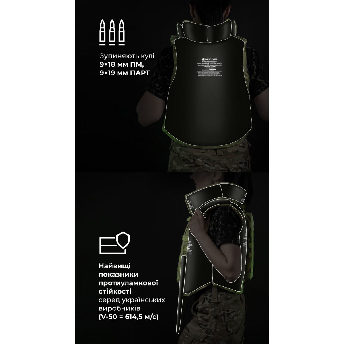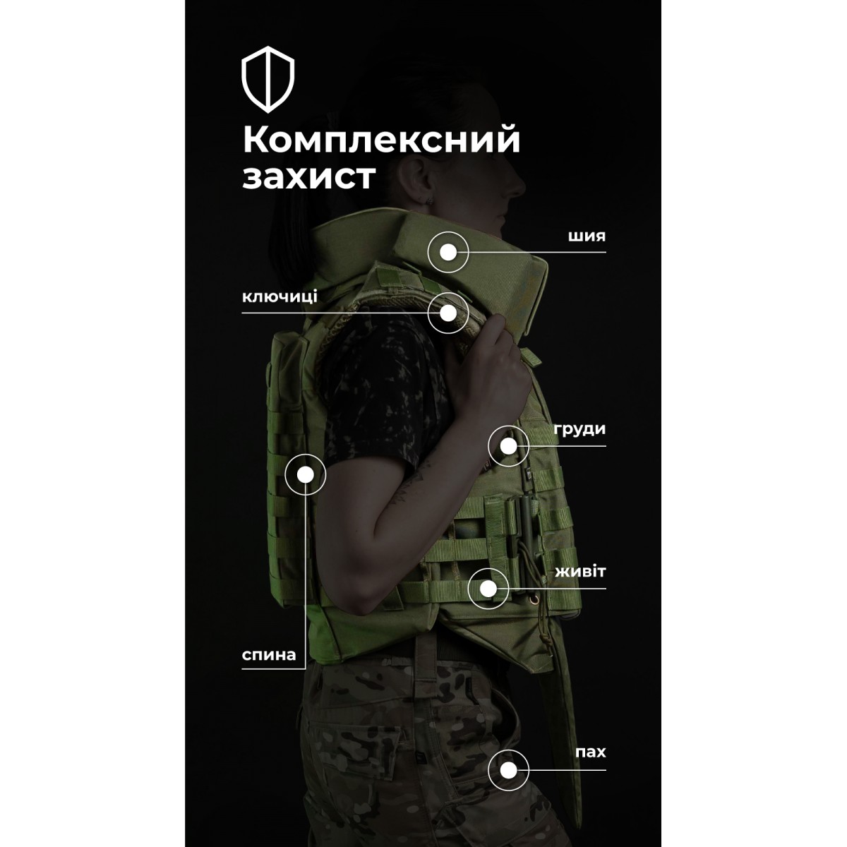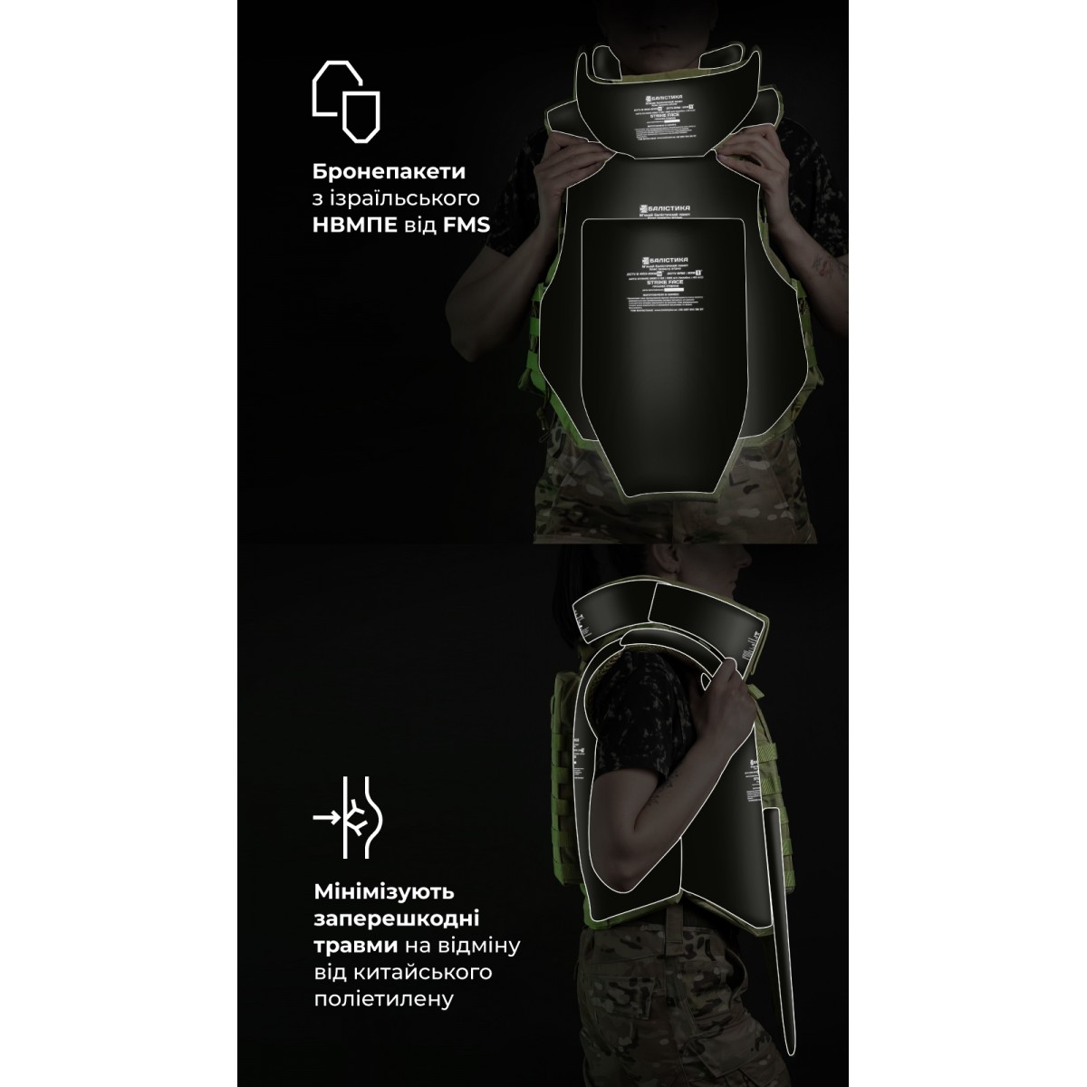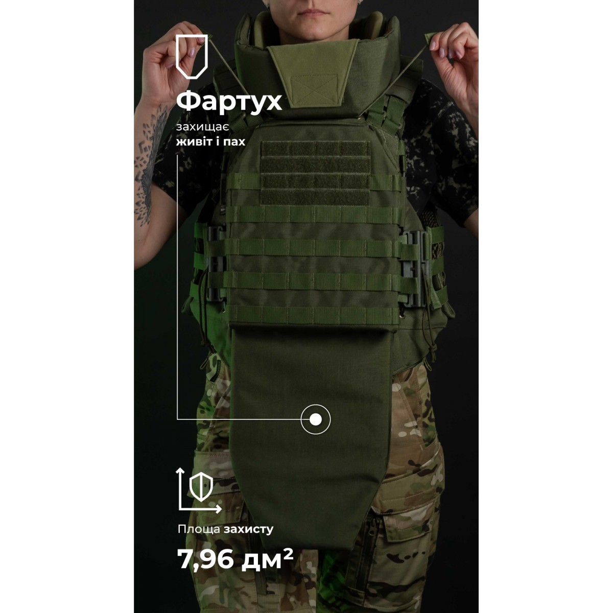 Женский бронежилет «Сармат» разработан с учетом анатомических особенностей женского тела. Фигурные демпферы обеспечивают комфортное прилегание и поддержку груди. Изделие имеет мягкие бронепакеты 1-го класса защиты, которые покрывают грудную клетку, спину, шею, ключицы, живот и пах. ✅ Ключевые преимущества Анатомические демпферы и укороченные лямки обеспечивают плотную, но не стесняющую посадку, которая не сдавливает грудь и не мешает движениям. Наши бронепакеты 1-го класса изготовлены из СВМПЭ от FMS (Израиль). Они отличаются самыми высокими показателями противоосколочной устойчивости среди других производителей. Площадь защиты 49,34 дм² с расширенным покрытием шеи, ключиц, живота и паха уже в базовой комплектации. Удобный модуль защиты шеи с разрезом сзади, который позволяет двигать головой в шлеме; без щелей для осколков. Мягкая велкро-накладка на передней части шеи, которая предотвращает раздражение кожи на подбородке и которую можно снимать для стирки. Система экстренного сброса позволяет за секунду разделить бронежилет на переднюю и заднюю части. Прочные материалы – нейлон 1000D (аналог Cordura), гиполон, 3D-сетка – и надежная фурнитура AMM обеспечивают долговечность и выносливость. Особенности товара ️ Балистическая защита Бронежилет оснащен мягкой бронезащитой 1-го класса общей площадью 49,34 дм² и весом 4,8 кг (без бронеплит). Материал – израильский СВМПЭ от компании FMS. Показатель противоосколочной устойчивости (V-50) составляет 614,5 м/с. Выдерживает выстрел пистолетными пулями 9×18 мм ПМ, 9×19 мм ПАРТ. Протокол отстрела 1-й класс защиты согласно ДСТУ (STANAG V-50 – 614,5 м/с) Протокол отстрела женского бронежилета «Сармат» 1-й класс согласно ДСТУ ️ Бронеплиты «Сармат» рассчитан на комплектацию стандартными пластинами размером 25×30 см толщиной до 3 см. Также совместим с пластинами ESAPI M и SAPI M. Бронежилет совместим с соответствующими бронепластинами, которые можно приобрести в магазинах «Баллистика»: Анатомическая полиэтиленовая бронепластина с демпфером (3 класс защиты | 1,6 кг | 25х30 см | СВМПЭ) Бронепластина 6-го класса защиты керамическая ️ Материалы Прочный, износостойкий нейлон, способный выдерживать значительные нагрузки в течение длительного времени. 3D-сетка на внутренней части, которая способствует циркуляции воздуха и предотвращает перегрев. Анатомические демпферы из пены изнутри передней панели, которые уменьшают давление на грудь, лучше распределяют вес и значительно снижают усталость при длительном ношении. Нейлоновая липучка велкро производства Alfatex. Гиполон, из которого выполнена передняя часть лямок и вставка на клапане лямок для вкладки приклада. ️ Лямки Бронепакеты в лямках защищают от осколков плечи и ключицы. 3D-сетка и демпфер способствуют равномерному распределению веса на плечах. Гиполоновая часть укорочена (по сравнению с мужским «Сарматом»), фиксируется в клапане на липучку и регулируется по длине в соответствии с ростом военной. Сверху на лямках размещено несколько ячеек молли для закрепления небольших подсумков (под турникет или рацию) или лямок перекидного штурмового рюкзака. Велкро-хлястики, спрятанные в клапанах лямок, можно вывести наружу в виде петель для фиксации, например шланга от гидратора или антенны радиостанции. ️ Модуль защиты шеи Съемный воротник для защиты шеи и ключиц крепится к бронежилет