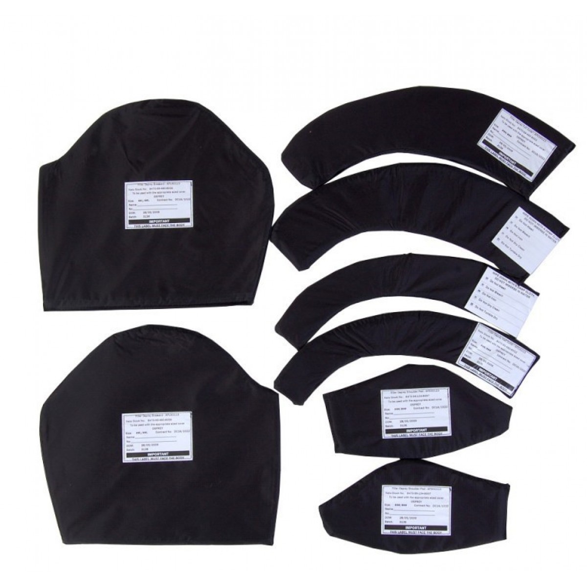 Комплект оригинальных вставок из кевлара для бронежилета Osprey MK4. В комплект входят: вставки в плечи,2 комплекта шеи и комплект лопаток. Размеры S,M,L. Год выпуска 2009-2011. Подходят к чехлам Osprey MK3 и Osprey MK4.