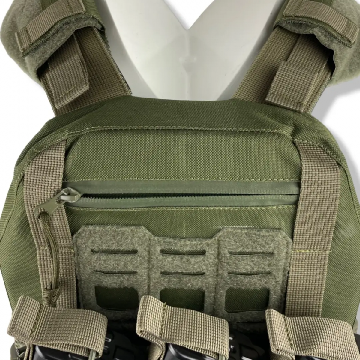 Для крепления дополнительного снаряжения, такого как итоги, аптечки и модульные вставки предусмотрен интерфейс MOLLE Laser Cut. Это позволяет настроить плитоноску под свои потребности и требования.