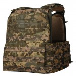 Спинной секции с внутренним карманом для установки мягкого баллистического пакета или бронеплиты размером 25х30 см. Сверху расположена панель Velcro, снизу - три ряда строп Molle;