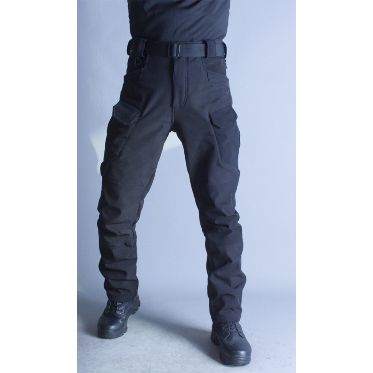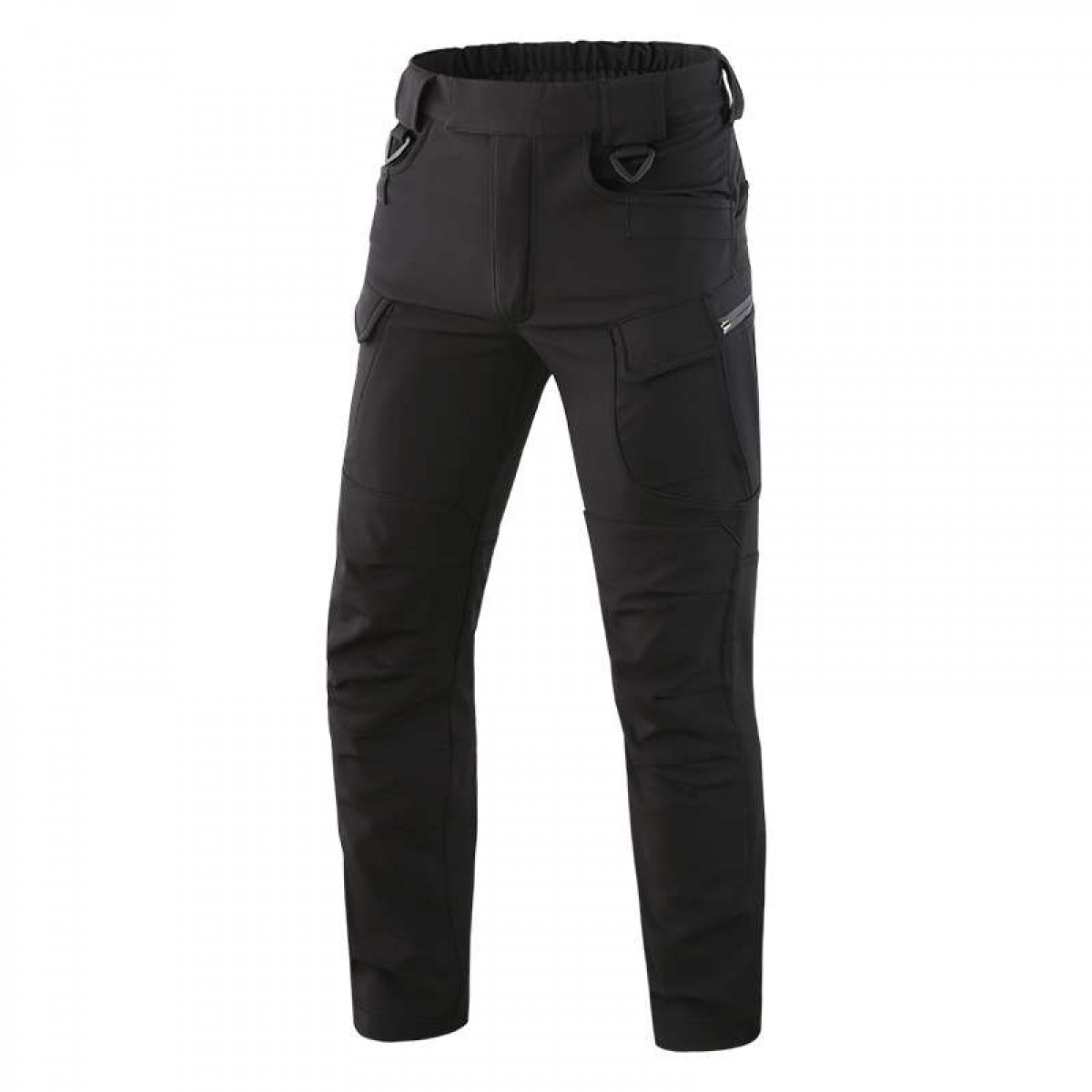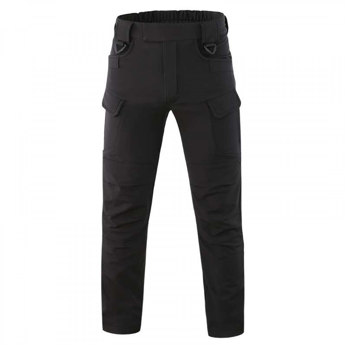 Мужские штаны СофтШелл подойдут путешественникам и для каждодневного использования. Тактическая модель черного цвета дополнительно укреплена на коленях и имеет широкие крепления для ремня. Накладные карманы имеют клапан на липучке для защиты содержимого, остальные остаются открытыми.