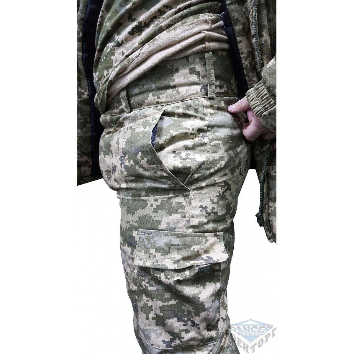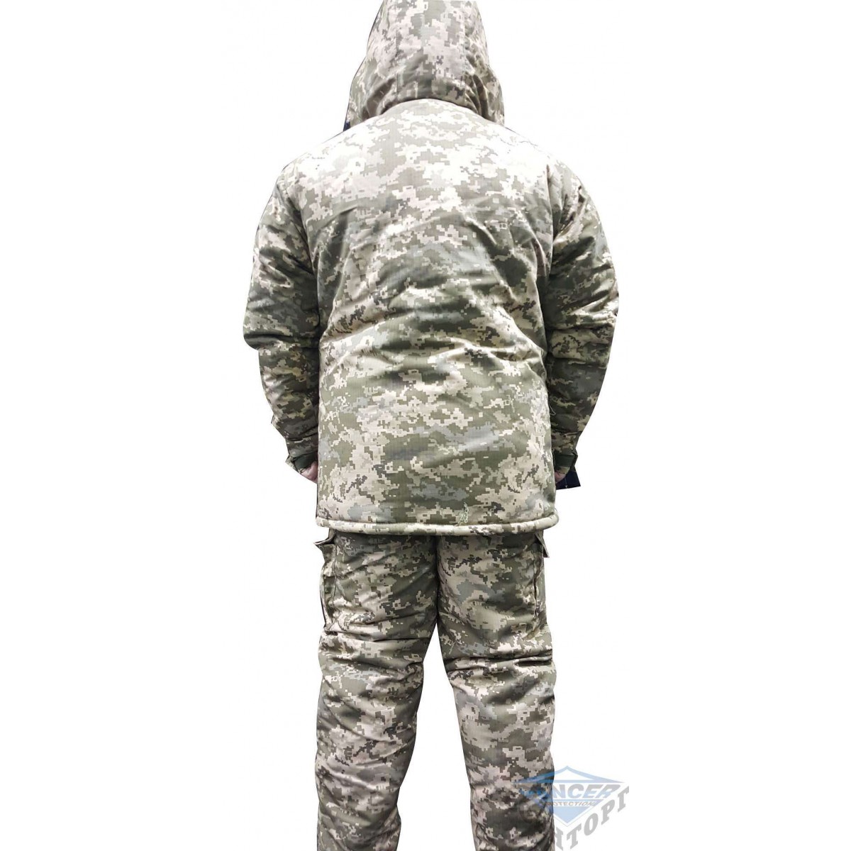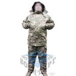 для охоты, рыбалки, силовых структур. Благодаря своим технологическим особенностям, костюм позволяет находиться на открытом воздухе в температурном режиме до -25°С. Костюм ветро-влаго стойкий, хорошо держит тепло(эффект термоса). Костюм состоит из удлиненной куртки и брюк с высоким поясом. Куртка прямая, на змейке с ветрозащитным клапаном по всей длине змейки. Ворот высокий, стойка, утеплен. Капюшон глубокий, утеплен флисом, на застежках-липучках и затяжках. На рукавах объемный, накладной карман с клапаном, на липучках, манжет на рукаве на резинке. Нагрудные, врезные карманы расположены вертикально для быстрого и удобного доступа, с ветро-влаго защитными змейками. Нижние карманы объемные, мультифункциональные, с защитными клапанами на липучках. Брюки традиционные карго. Карманы верхние -косые,врезные, карманы на бедре -объемные, разгрузочные, с защитными клапанами. Пояс на брюках завышен, под широкий ремень, гульфик на пуговицах, низ штанин на утяжках. В местах наибольших нагрузок и натяжения(карманы, клапана, застежки) костюм усилен дополнительными строчками – закрепами.