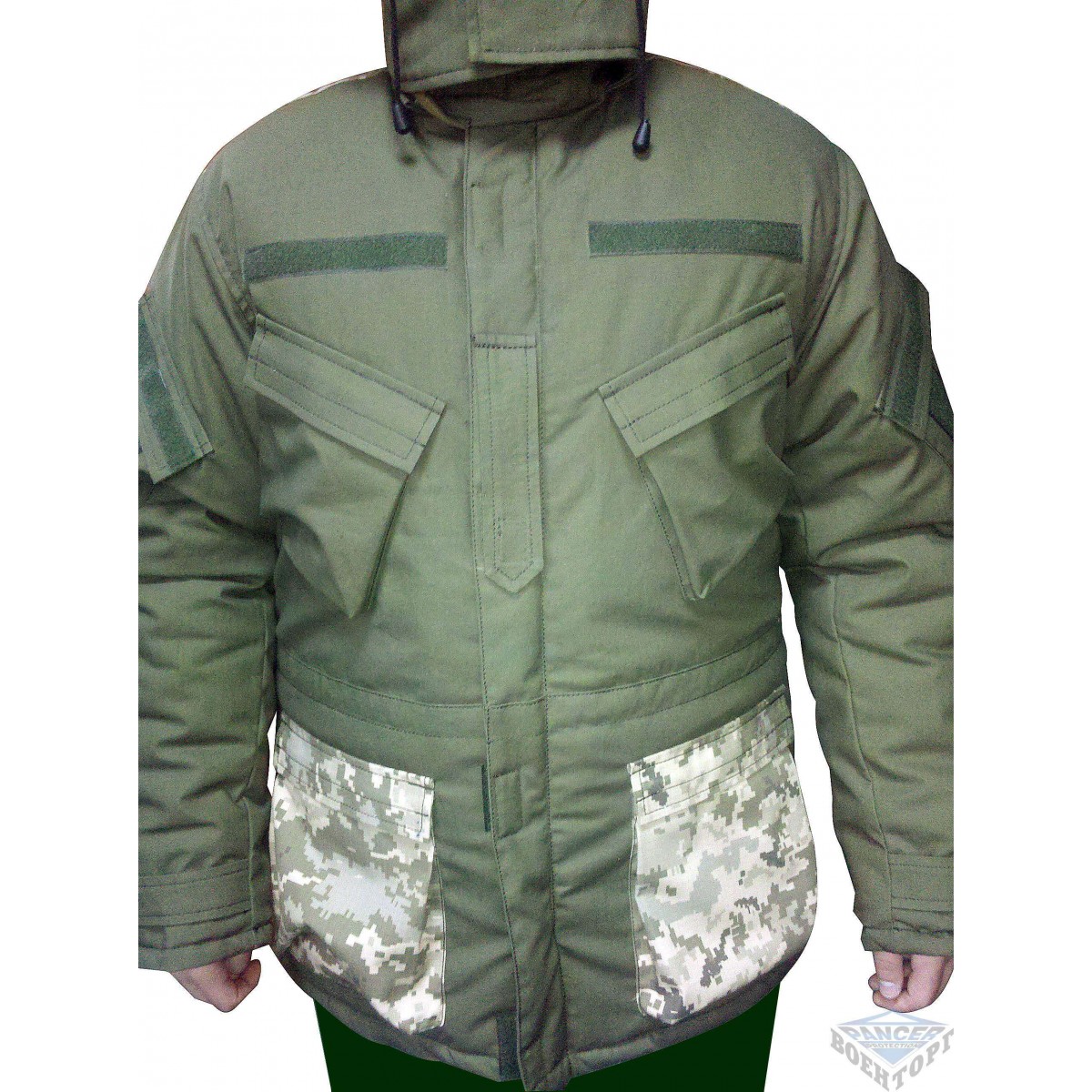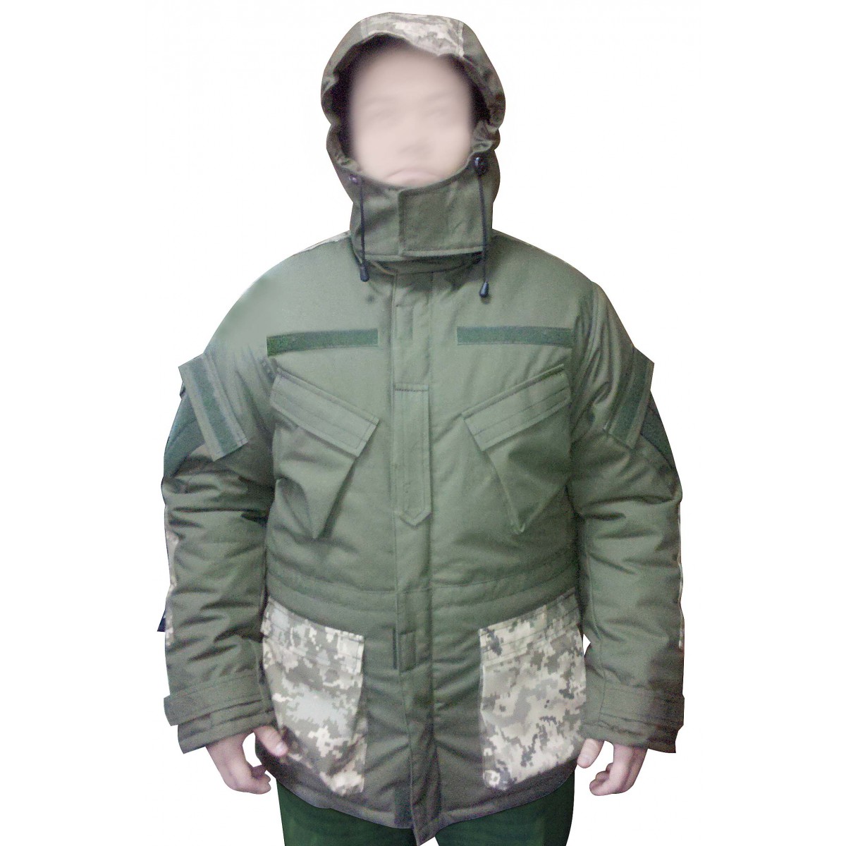 Расцветка зимней военной куртки, купить которую захотят не только военнослужащие, но и охотники, обязательно должна быть в защитных цветах хаки либо в схеме камуфляжного типа. Данная вещь сочетает в себе оба варианта, что делает этот бушлат универсальным для любой местности.
