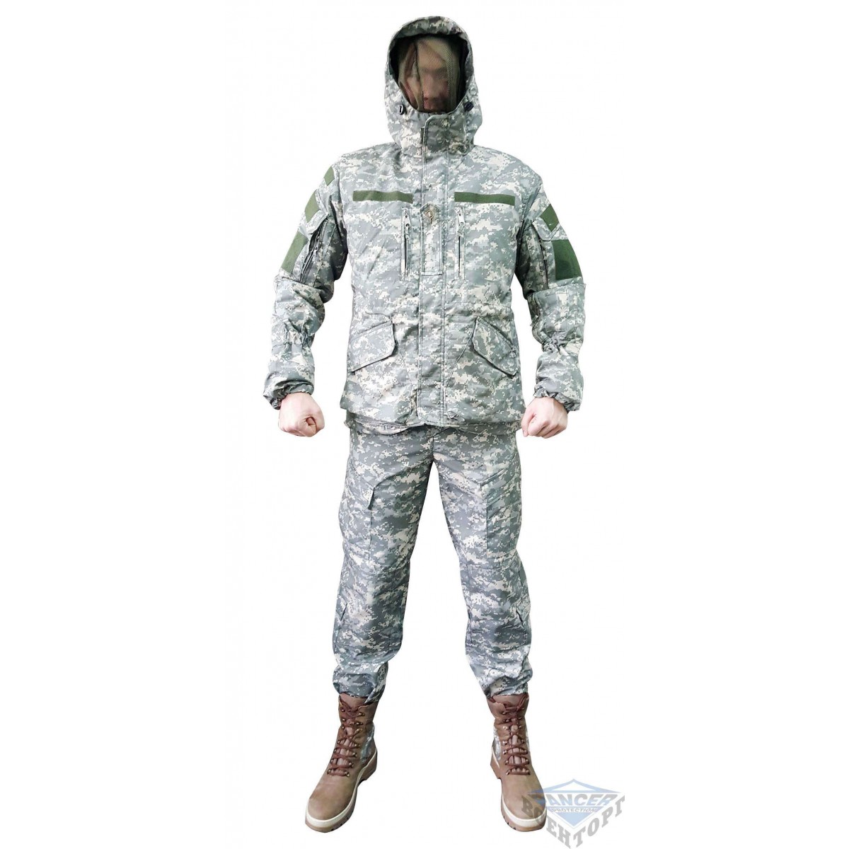 куртка имеет 9 удобных карманов, липучки под шевроны, сетку против москитов, капюшон с горловиной.