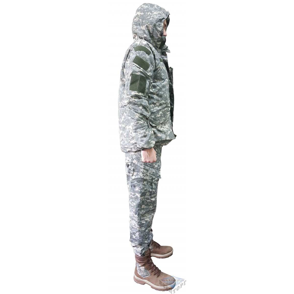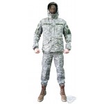 купить такую военную куртку стоит каждому, кто планирует проводить много времени около воды, на ветреной и открытой местности, а также в зимнем хвойном лесу (т.к. камуфляж сочетает в себе светлые оттенки серого с темными зелено-болотными, то хорошо подходит для местности, где есть и зелень, и снег).