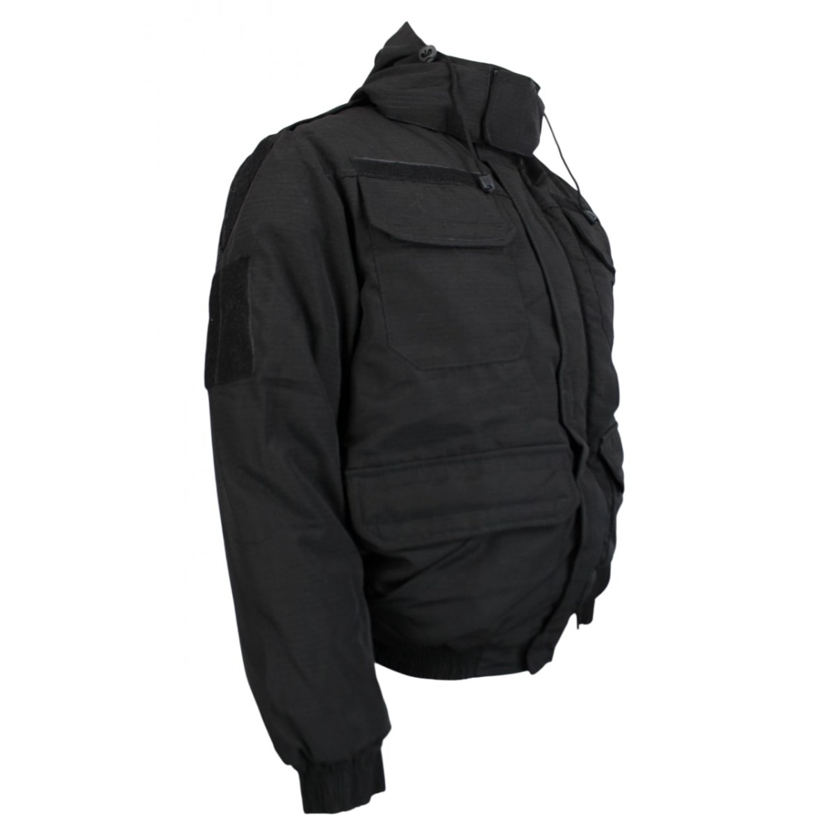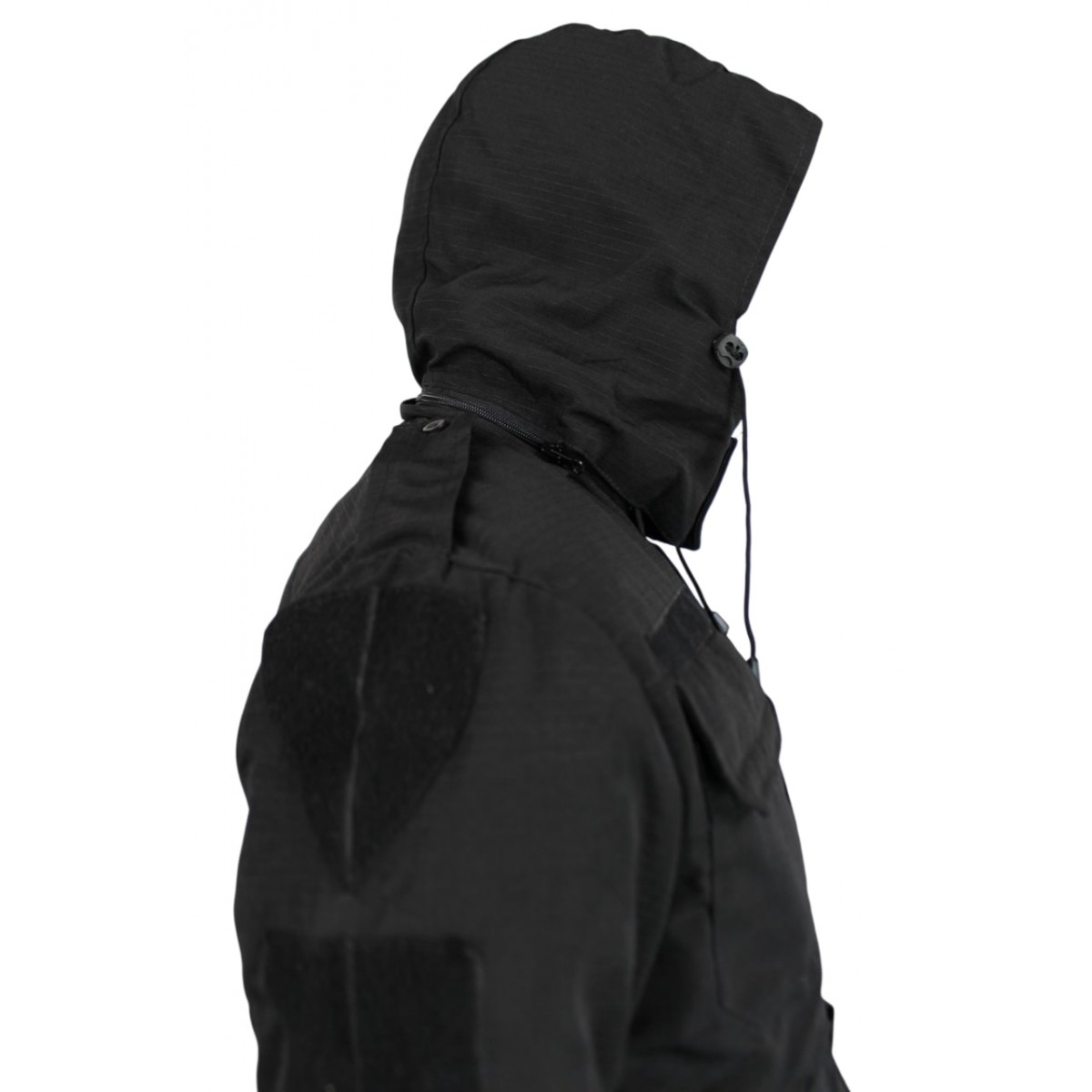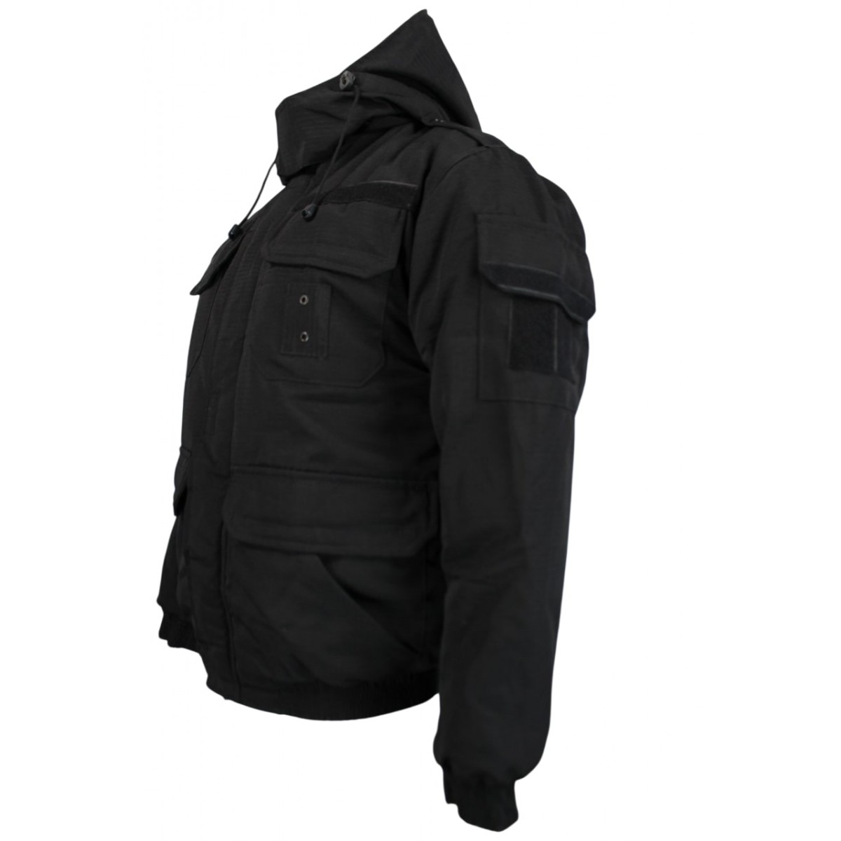 Модель предназначена для сотрудников охраны и тех, кому нужна надёжная функциональная зимняя куртка. Верх выполнен из Rip-stop ткани, которая сочетает стойкость к разрывам и защиту от влаги. Флисовая подкладка обеспечивает сохранение тепла, а синтепон создаёт оптимальную теплоизоляцию при низких температурах. Капюшон съёмный и регулируемый, что позволяет адаптировать куртку под погодные условия.
