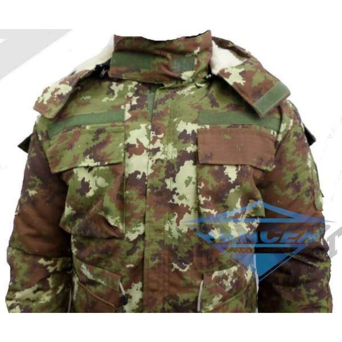 Рекомендуем купить военную куртку фасона парки, т.к. в ней имеется достаточное количество карманов для ношения амуниции, для демпферных вставок и для нашивок. Отстегивающийся капюшон на овчине закрывается на специальные клапаны на липучке, которые прикрывают лицо от воздействия внешней среды. Таким де клапаном оснащена и застежка-молния.