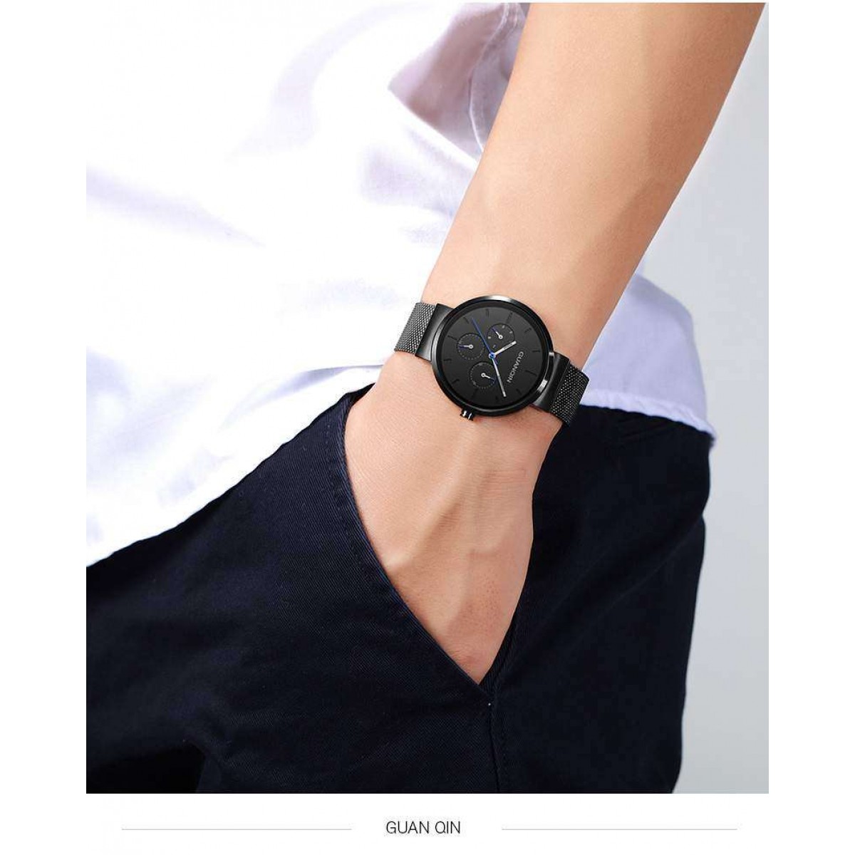 Guanqin это высокоточные часы, как с кварцевым механизмом, так и механические. Используется закаленная сталь 316, сапфировые стекла, ремешки для часов с качественной кожи ягненка. Так же часы богаты своим функционалом, могут снабжаться компасом, вечным календарем, секундомером и т.д. Механические часы не редко снабжаются турбийоном, для точности хода. Каждая модель часов в качественной картонной упаковке, с инструкцией и фирменной салфеткой из микрофибры. Модели с металлическим браслетом дополнительно комплектуются инструментом, для самостоятельной регулировки размера. Бренд Guanqin родом с поднебесной и переводится как «Родной человек». На родине аксессуары бренда из высокого ценового сегмента, в нас же это средний. В часах Guanqin оно выражается не только в добротных, гипоаллергенных материалах, но и функционале. В Guanqin используется закаленные стали, что делает корпуса и браслеты часов более износостойкими. В моделях с ремешком, ремешок изготовлен из натуральной кожи ягнят, кожа ягненка более мягкая и прочная с малозаметными порами. Особым плюсом Guanqin это применение сапфирового стекла, сапфировые стекла более износостойкие к царапинам.Отзывы о Часы Guanqin Black-Black-Black GS19103 CS