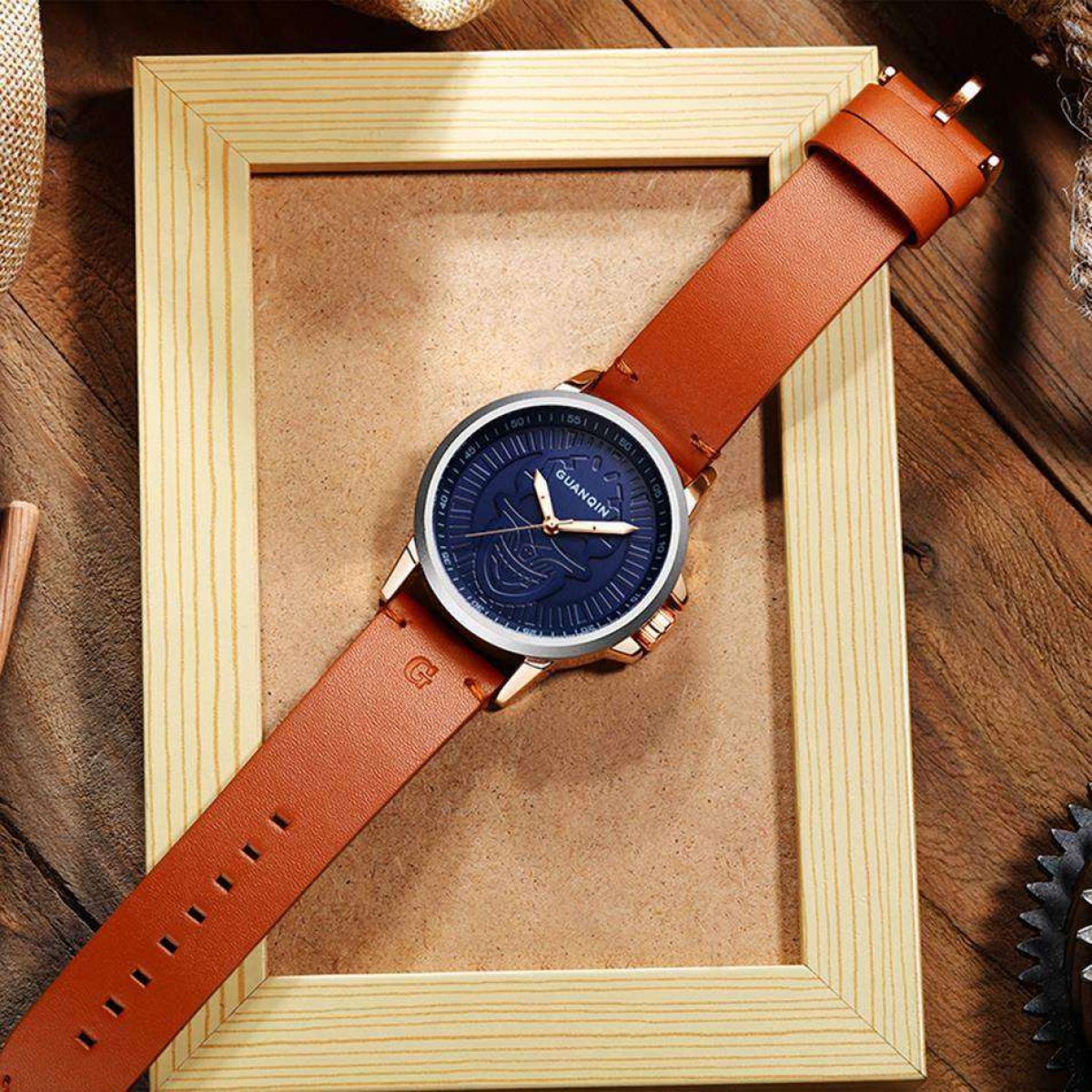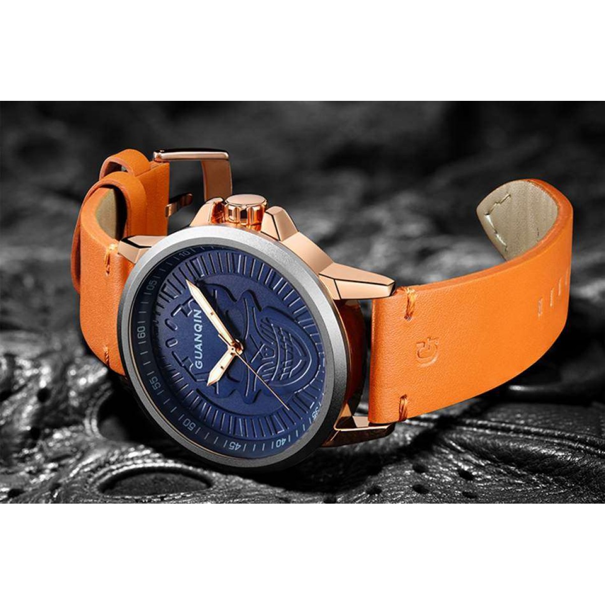 Guanqin это высокоточные часы, как с кварцевым механизмом, так и механические. Используется закаленная сталь 316, сапфировые стекла, ремешки для часов с качественной кожи ягненка. Так же часы богаты своим функционалом, могут снабжаться компасом, вечным календарем, секундомером и т.д. Механические часы не редко снабжаются турбийоном, для точности хода. Каждая модель часов в качественной картонной упаковке, с инструкцией и фирменной салфеткой из микрофибры. Модели с металлическим браслетом дополнительно комплектуются инструментом, для самостоятельной регулировки размера. Бренд Guanqin родом с поднебесной и переводится как «Родной человек». На родине аксессуары бренда из высокого ценового сегмента, в нас же это средний. В часах Guanqin оно выражается не только в добротных, гипоаллергенных материалах, но и функционале. В Guanqin используется закаленные стали, что делает корпуса и браслеты часов более износостойкими. В моделях с ремешком, ремешок изготовлен из натуральной кожи ягнят, кожа ягненка более мягкая и прочная с малозаметными порами. Особым плюсом Guanqin это применение сапфирового стекла, сапфировые стекла более износостойкие к царапинам.Отзывы о Часы Guanqin Silver-Blue-Brown GS19077 CL
