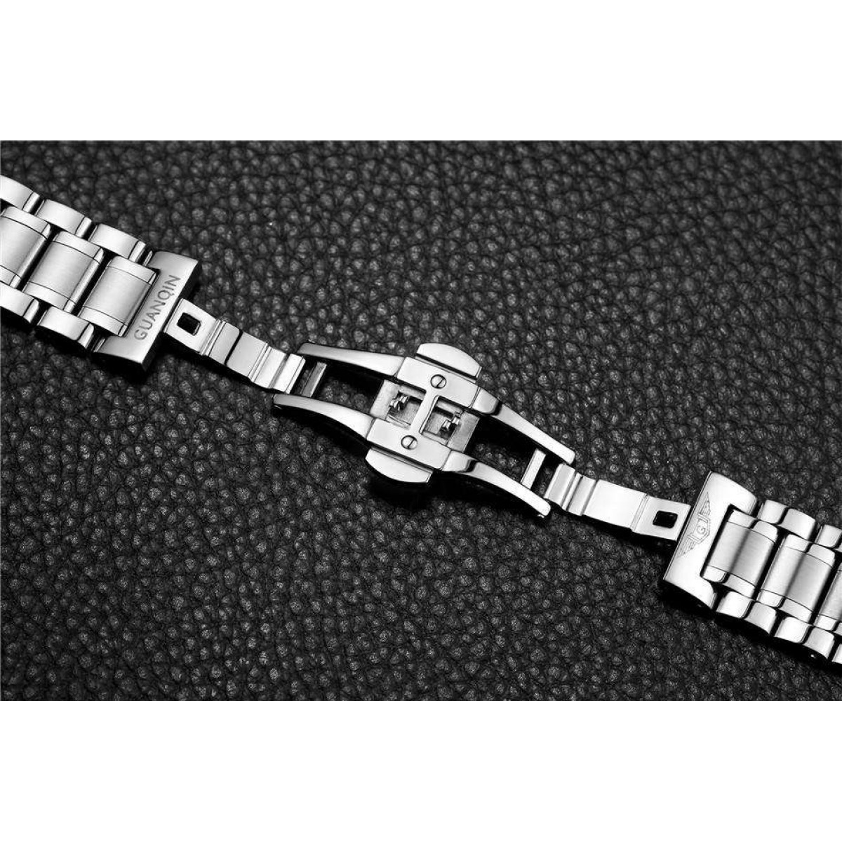 Guanqin это высокоточные часы, как с кварцевым механизмом, так и механические. Используется закаленная сталь 316, сапфировые стекла, ремешки для часов с качественной кожи ягненка. Так же часы богаты своим функционалом, могут снабжаться компасом, вечным календарем, секундомером и т.д. Механические часы не редко снабжаются турбийоном, для точности хода. Каждая модель часов в качественной картонной упаковке, с инструкцией и фирменной салфеткой из микрофибры. Модели с металлическим браслетом дополнительно комплектуются инструментом, для самостоятельной регулировки размера. Бренд Guanqin родом с поднебесной и переводится как «Родной человек». На родине аксессуары бренда из высокого ценового сегмента, в нас же это средний. В часах Guanqin оно выражается не только в добротных, гипоаллергенных материалах, но и функционале. В Guanqin используется закаленные стали, что делает корпуса и браслеты часов более износостойкими. В моделях с ремешком, ремешок изготовлен из натуральной кожи ягнят, кожа ягненка более мягкая и прочная с малозаметными порами. Особым плюсом Guanqin это применение сапфирового стекла, сапфировые стекла более износостойкие к царапинам.Отзывы о Часы Guanqin Silver-Blue-Silver GS19064 CS