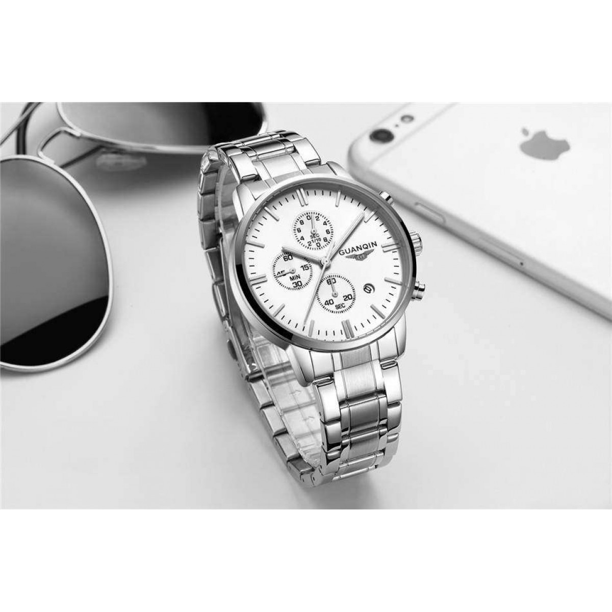 Часы Guanqin Silver-White-Silver GQ12006-A CS