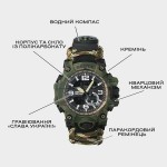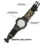 Besta Military с компасом – часы для выживания 7 в 1Besta Military – уникальная модель, разработанная в Украине специально для военных. В часах есть: компас, термометр, паракордовый ремешок, кремень, свисток, подсветка. Также на циферблате спереди исполнена элегантная надпись СЛАВА УКРАИНЕ!, а сзади надпись ГЕРОЯМ СЛАВА! Модель разработана молодым украинским брендом Besta специально для использования в тяжелых условиях и не боится попадания воды и морозов. Подробнее о функциях:1. Компас – в модели стоит надежный водный компас.2. Паракордновый ремешок – при необходимости его можно разобрать и использовать как веревку. В экстренных случаях она, например, остановит кровотечение.3. Кремень – предназначен для экстренного разведения костра.4. Свисток – для сигнала бедствия или отпугивания животных. Термометр поможет измерить температуру воздуха.6. Подсветка благодаря ей можно будет видеть время в любое время дня.7. Надписи Слава Україні! Героям Слава! спереди и сзади на циферблатах. В комплекте идет официальная гарантия на 12 месяцев.