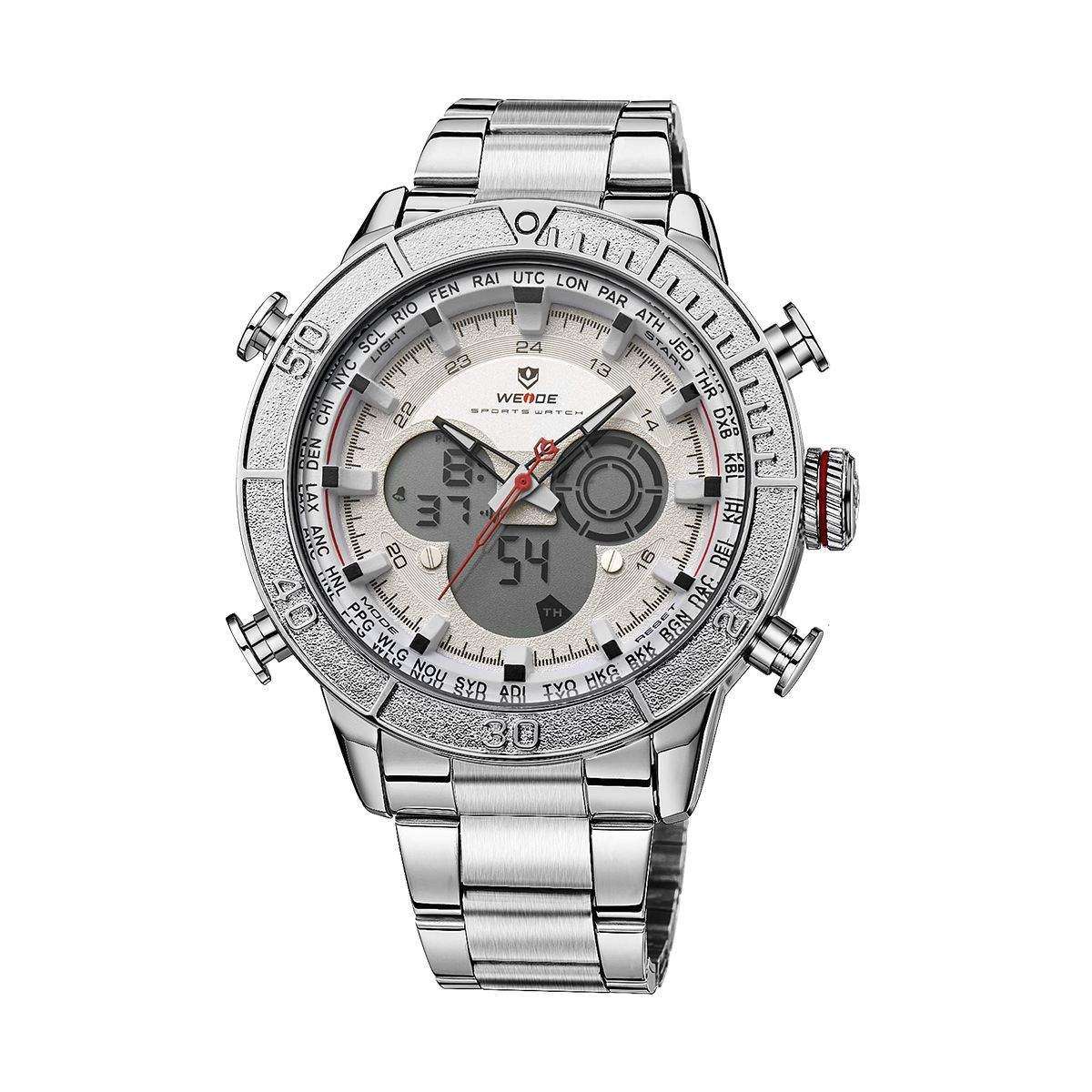 Наручные часы WEIDE- стильный аксессуар, безусловно являющийся неотъемлемым атрибутом любого современного мужчины. Невероятный брутальный дизайн, множество функций и несравненная практичность. Залогом качества часов является японский механизм Miyota в корпусе из нержавеющей стали. Противоударные, водонепроницаемые модели часов WEIDE обладают устойчивостью к магнитному полю и являются настоящей находкой для брутальных мужчин, предпочитающих активный образ жизни. Часы WEIDE- собираются на трех фабриках в Китае и Японии с 2003года. С 2015 года Бренд занимает лидирующие позиции по продажам в мире. Полная сборка и механизм производится в Японии. Кварцевые часы Weide способны выдерживать повышенные эксплуатационные нагрузки, с лёгкостью выдержат повседневные будни и не оставят вас при занятиях спортом. Все благодаря безупречному качеству деталей и высокому контролю качества в целом. А главное что такой необходимый аксессуар для мужчины как часы, от бренда WEIDE, доступен каждому.Отзывы о Часы Weide White WH6308-2C SS