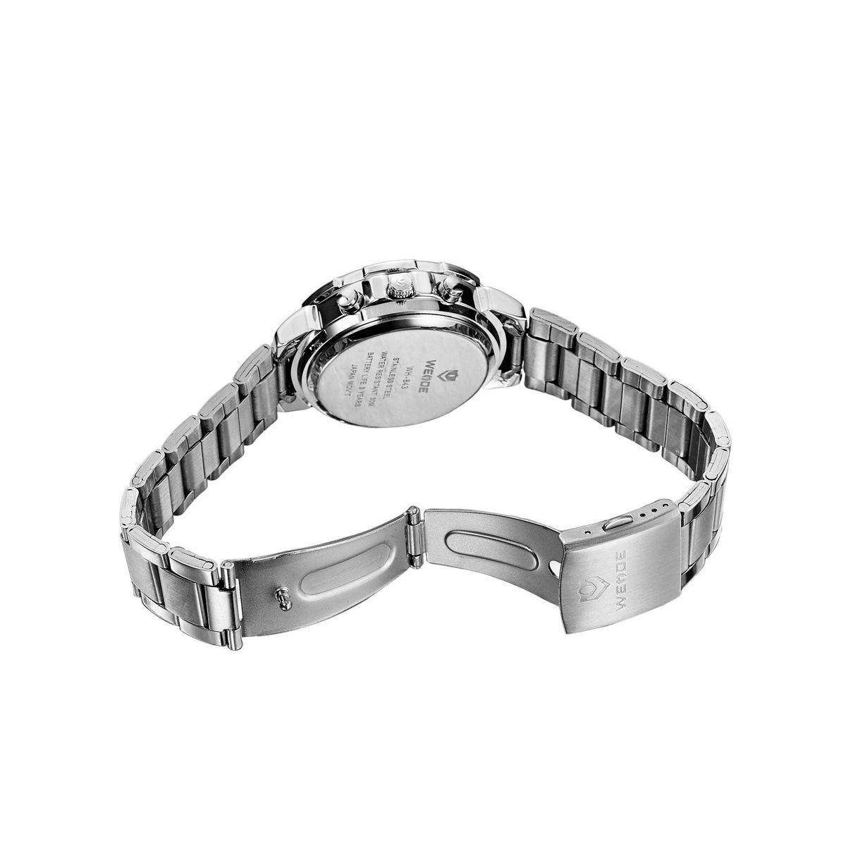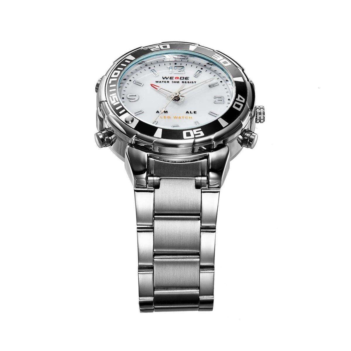 Наручные часы WEIDE- стильный аксессуар, безусловно являющийся неотъемлемым атрибутом любого современного мужчины. Невероятный брутальный дизайн, множество функций и несравненная практичность. Залогом качества часов является японский механизм Miyota в корпусе из нержавеющей стали. Противоударные, водонепроницаемые модели часов WEIDE обладают устойчивостью к магнитному полю и являются настоящей находкой для брутальных мужчин, предпочитающих активный образ жизни. Часы WEIDE- собираются на трех фабриках в Китае и Японии с 2003года. С 2015 года Бренд занимает лидирующие позиции по продажам в мире. Полная сборка и механизм производится в Японии. Кварцевые часы Weide способны выдерживать повышенные эксплуатационные нагрузки, с лёгкостью выдержат повседневные будни и не оставят вас при занятиях спортом. Все благодаря безупречному качеству деталей и высокому контролю качества в целом. А главное что такой необходимый аксессуар для мужчины как часы, от бренда WEIDE, доступен каждому.Отзывы о Часы Weide White WH843-2C SS