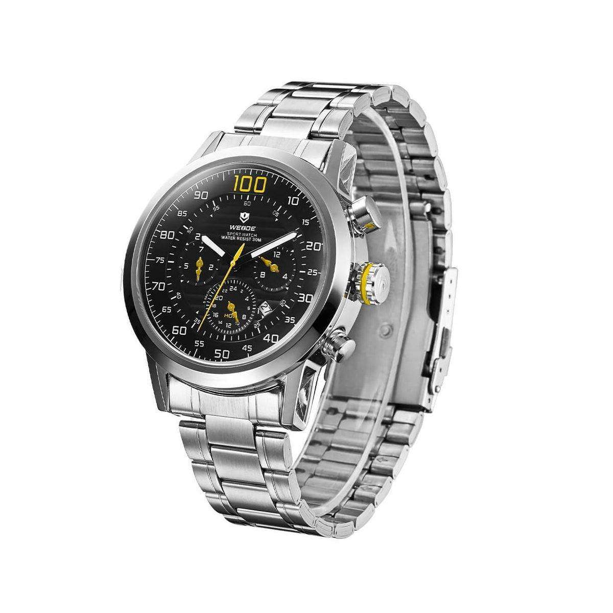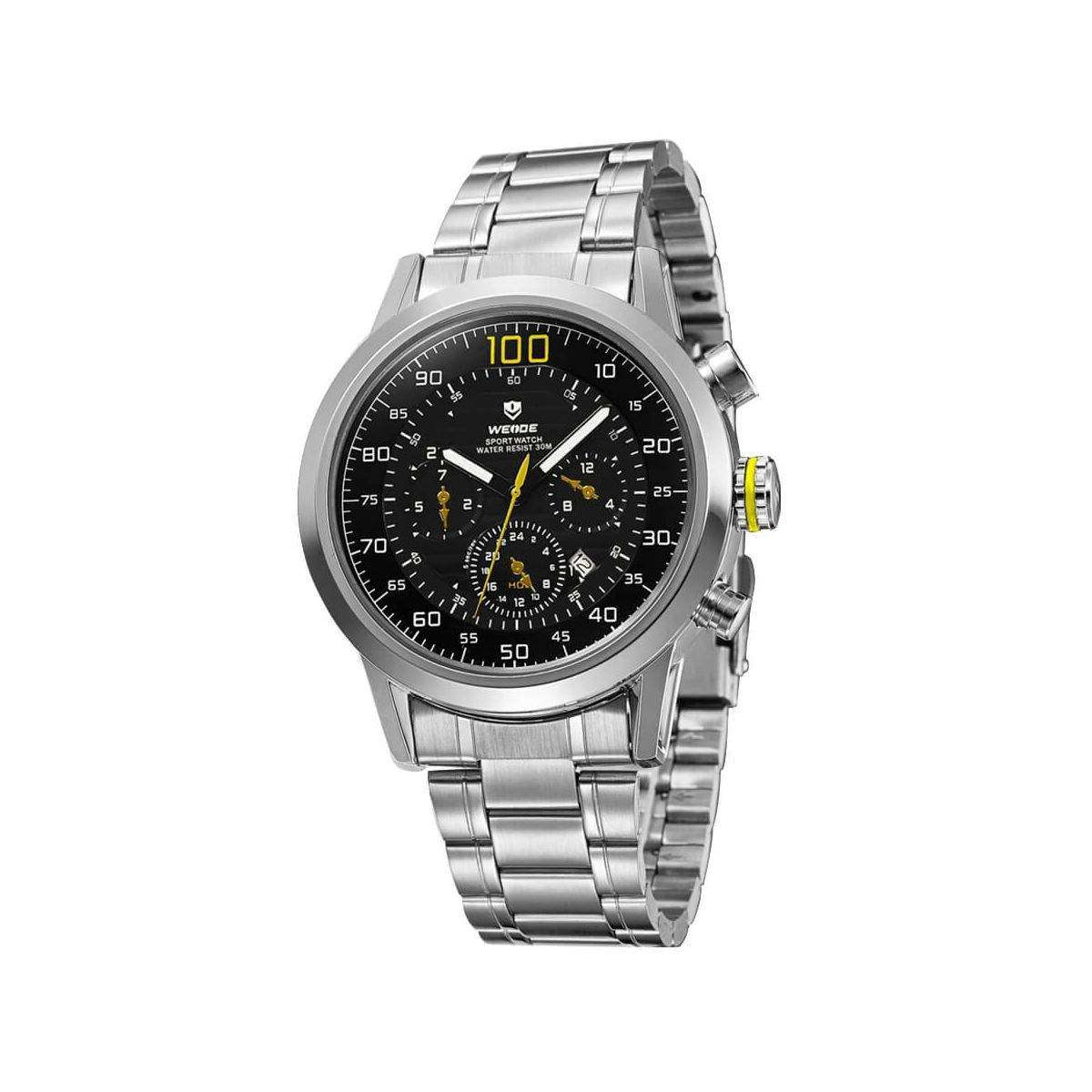 Наручные часы WEIDE- стильный аксессуар, безусловно являющийся неотъемлемым атрибутом любого современного мужчины. Невероятный брутальный дизайн, множество функций и несравненная практичность. Залогом качества часов является японский механизм Miyota в корпусе из нержавеющей стали. Противоударные, водонепроницаемые модели часов WEIDE обладают устойчивостью к магнитному полю и являются настоящей находкой для брутальных мужчин, предпочитающих активный образ жизни. Часы WEIDE- собираются на трех фабриках в Китае и Японии с 2003года. С 2015 года Бренд занимает лидирующие позиции по продажам в мире. Полная сборка и механизм производится в Японии. Кварцевые часы Weide способны выдерживать повышенные эксплуатационные нагрузки, с лёгкостью выдержат повседневные будни и не оставят вас при занятиях спортом. Все благодаря безупречному качеству деталей и высокому контролю качества в целом. А главное что такой необходимый аксессуар для мужчины как часы, от бренда WEIDE, доступен каждому.Отзывы о Часы Weide Yellow WH3311-2C SS