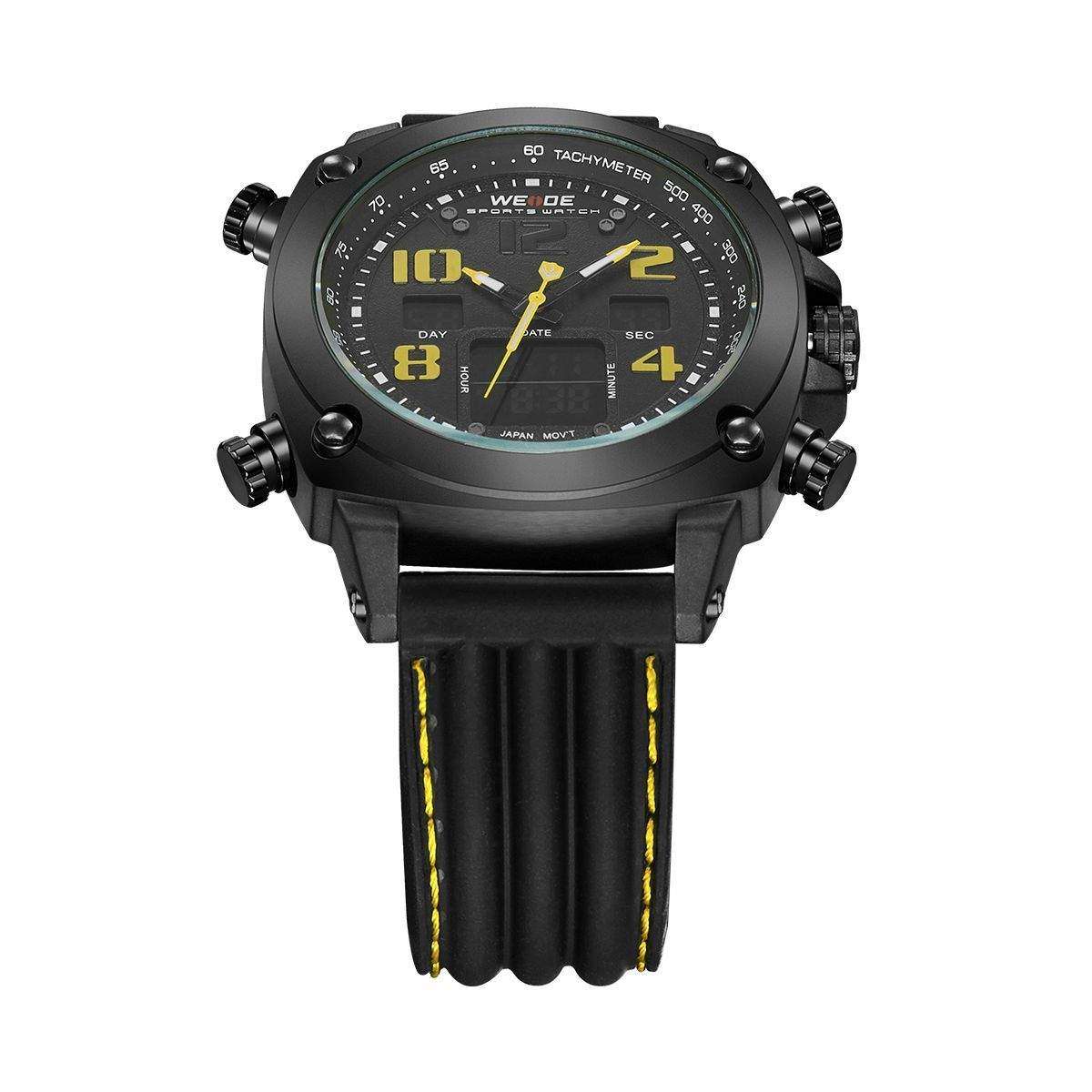 Наручные часы WEIDE- стильный аксессуар, безусловно являющийся неотъемлемым атрибутом любого современного мужчины. Невероятный брутальный дизайн, множество функций и несравненная практичность. Залогом качества часов является японский механизм Miyota в корпусе из нержавеющей стали. Противоударные, водонепроницаемые модели часов WEIDE обладают устойчивостью к магнитному полю и являются настоящей находкой для брутальных мужчин, предпочитающих активный образ жизни. Часы WEIDE- собираются на трех фабриках в Китае и Японии с 2003года. С 2015 года Бренд занимает лидирующие позиции по продажам в мире. Полная сборка и механизм производится в Японии. Кварцевые часы Weide способны выдерживать повышенные эксплуатационные нагрузки, с лёгкостью выдержат повседневные будни и не оставят вас при занятиях спортом. Все благодаря безупречному качеству деталей и высокому контролю качества в целом. А главное что такой необходимый аксессуар для мужчины как часы, от бренда WEIDE, доступен каждому.Отзывы о Часы Weide Yellow WH5208B-3C