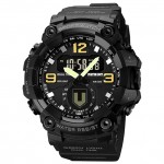 Диаметр корпуса составляет 54 мм, а длина каучукового ремешка – 26,5 см, что обеспечивает удобную посадку на запястье. Часы оборудованы стрелочно-электронным циферблатом с четкой индикацией часов, минут, секунд, дня недели и числа, а также электролюминесцентной подсветкой для удобства использования в темноте.
