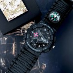 Эти часы оснащены кварцевым механизмом и различными функциями, такими как будильник, календарь, секундомер и индикация второго часового пояса. Кроме того, на циферблате отображаются часы, минуты, секунды, день недели, месяц и число. Стильный черный корпус и ремешок подчеркивают военную эстетику, что делает его привлекательным для любителей армейского стиля.