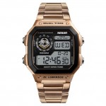 Часы имеют квадратный корпус диаметром 43 мм, выполнен из прочного поликарбоната, что гарантирует надежность в использовании. Водонепроницаемость до 50 м позволяет не беспокоиться о погоде во время активных занятий спортом или отдыха на воде. Длина ремешка в 25 см, изготовленного из нержавеющей стали, обеспечивает комфортную посадку на запястье.