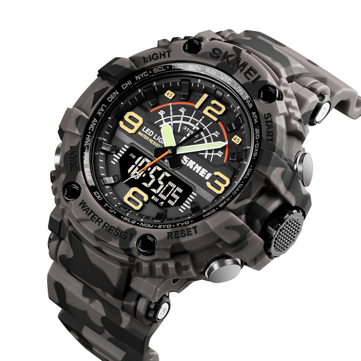 Часы Skmei 1617 Gray-Military – это идеальный выбор для мужчин, которые ценят спортивный и армейский стиль. С водонепроницаемостью до 50 метров, эти часы предназначены для активного использования. Корпус изготовлен из полимера, а ремешок – из каучука в стильном сером камуфляже. Модель оснащена кварцевым механизмом и стрелочно-электронным комбинированным циферблатом. Часы имеют ряд полезных функций, включая будильник, календарь, второй часовой пояс и секундомер. Электролюминесцентная подсветка обеспечивает удобство использования в темноте. Размеры корпуса составляют 55 х 56 мм, вес – 70 г, а длина ремешка – 27,5 см, ширина – 22 см. Часы имеют 12-месячную гарантию и изготовлены в Китае.