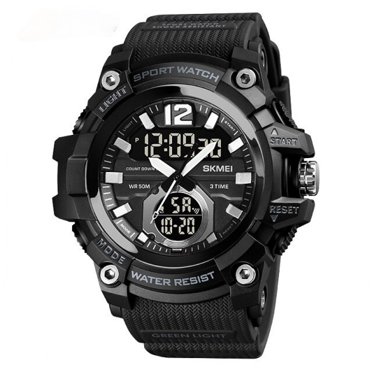 Эти спортивные часы оснащены электронным циферблатом с легко читаемыми арабскими цифрами. Он имеет множество полезных функций, включая будильник, календарь, секундомер и возможность отображения второго часового пояса. Также стоит отметить электролюминесцентную подсветку, которая позволяет удобно использовать эти часы в темноте.