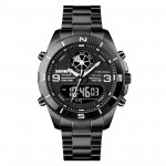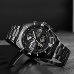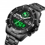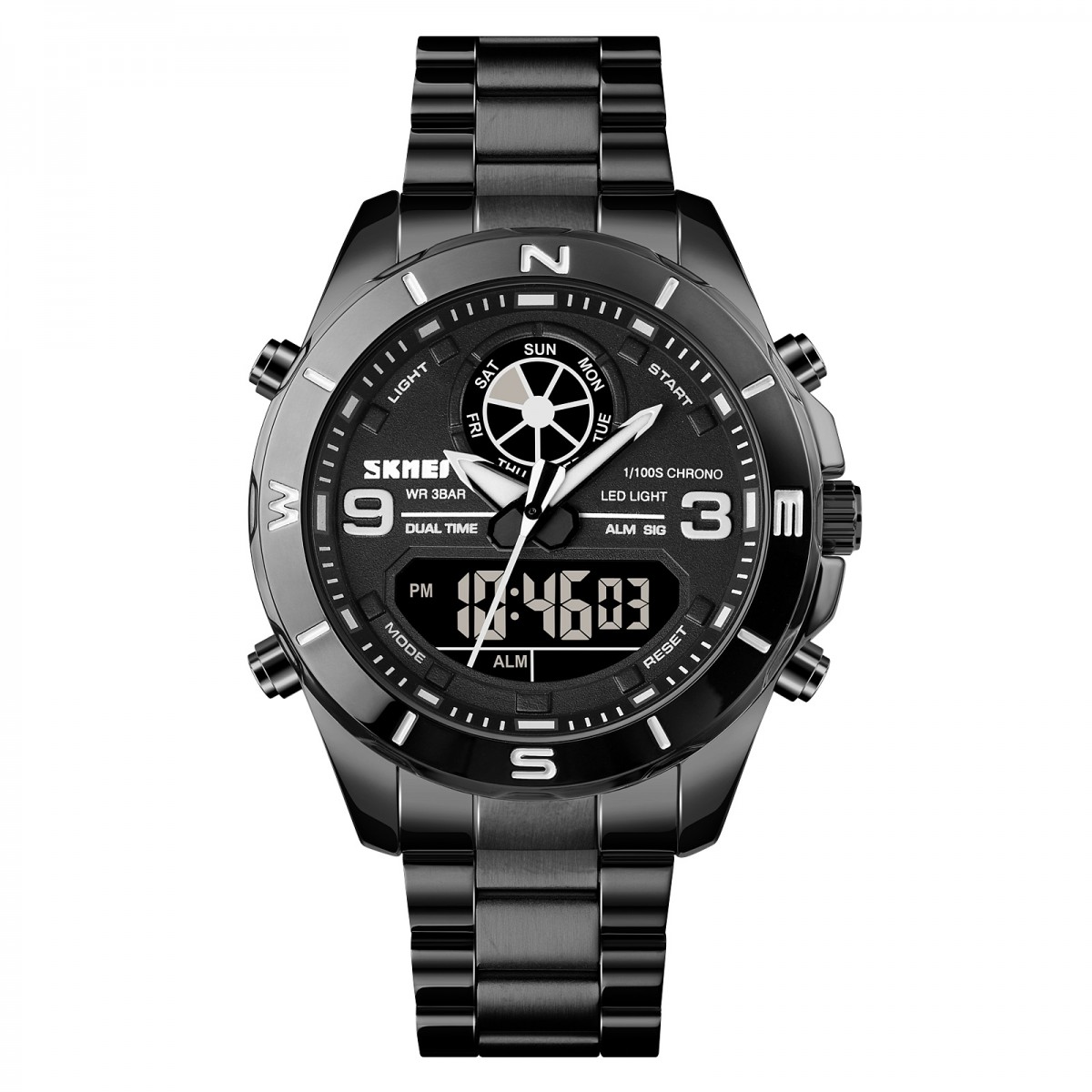 Skmei 1839BK оснащен кварцевым механизмом и стрелочно-электронным циферблатом, который отображает часы, минуты, секунды, день недели и число. Дополнительные функции включают в себя будильник, календарь, секундомер и второй часовой пояс.