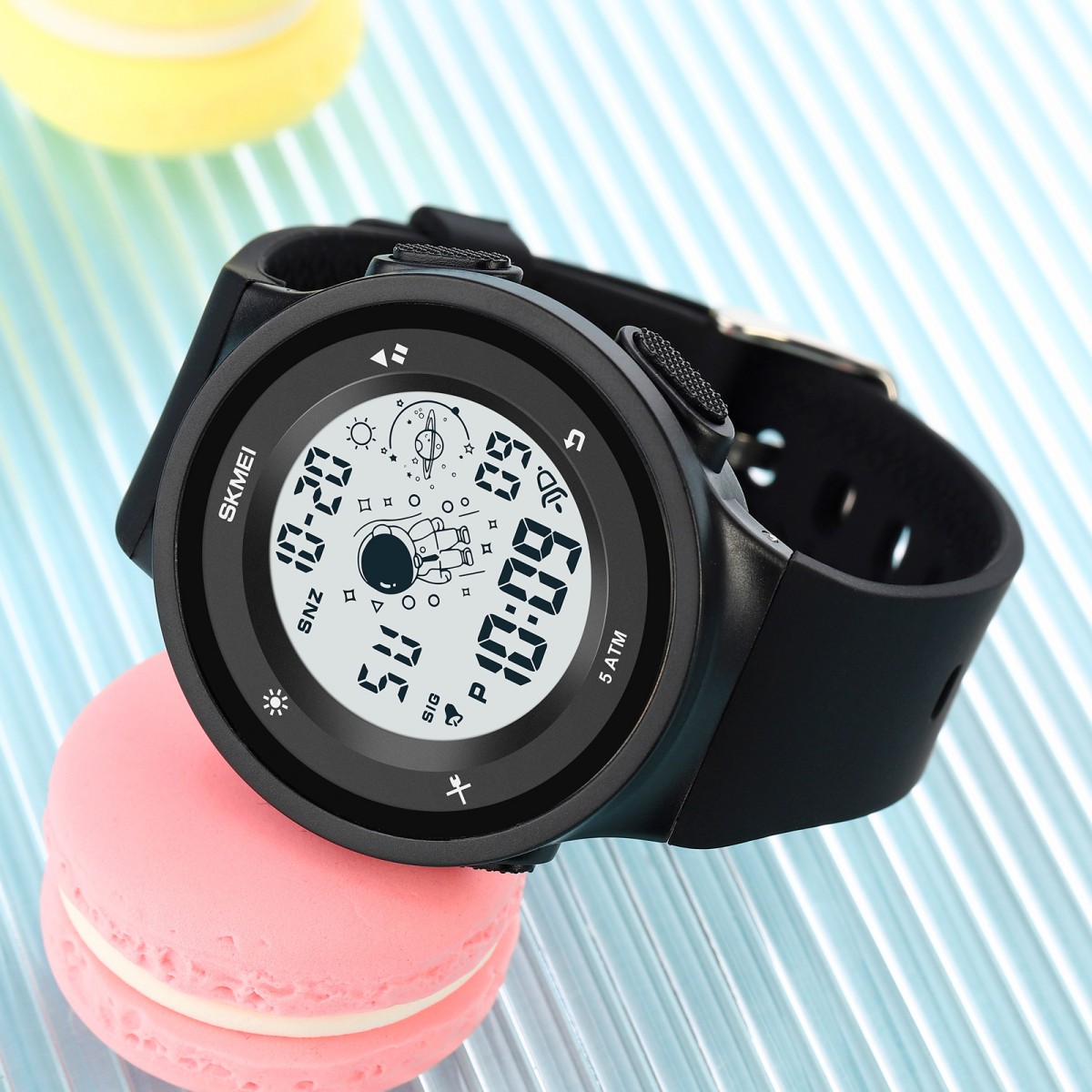 Среди основных функций - будильник, календарь, второй часовой пояс и секундомер. Часы также оснащены электролюминесцентной подсветкой, позволяющей легко читать информацию в темноте. С размерами 45 х 42 мм и весом 41 г он подарит комфорт в носке. Часы предоставляются с 12-месячной гарантией и производятся в Китае.