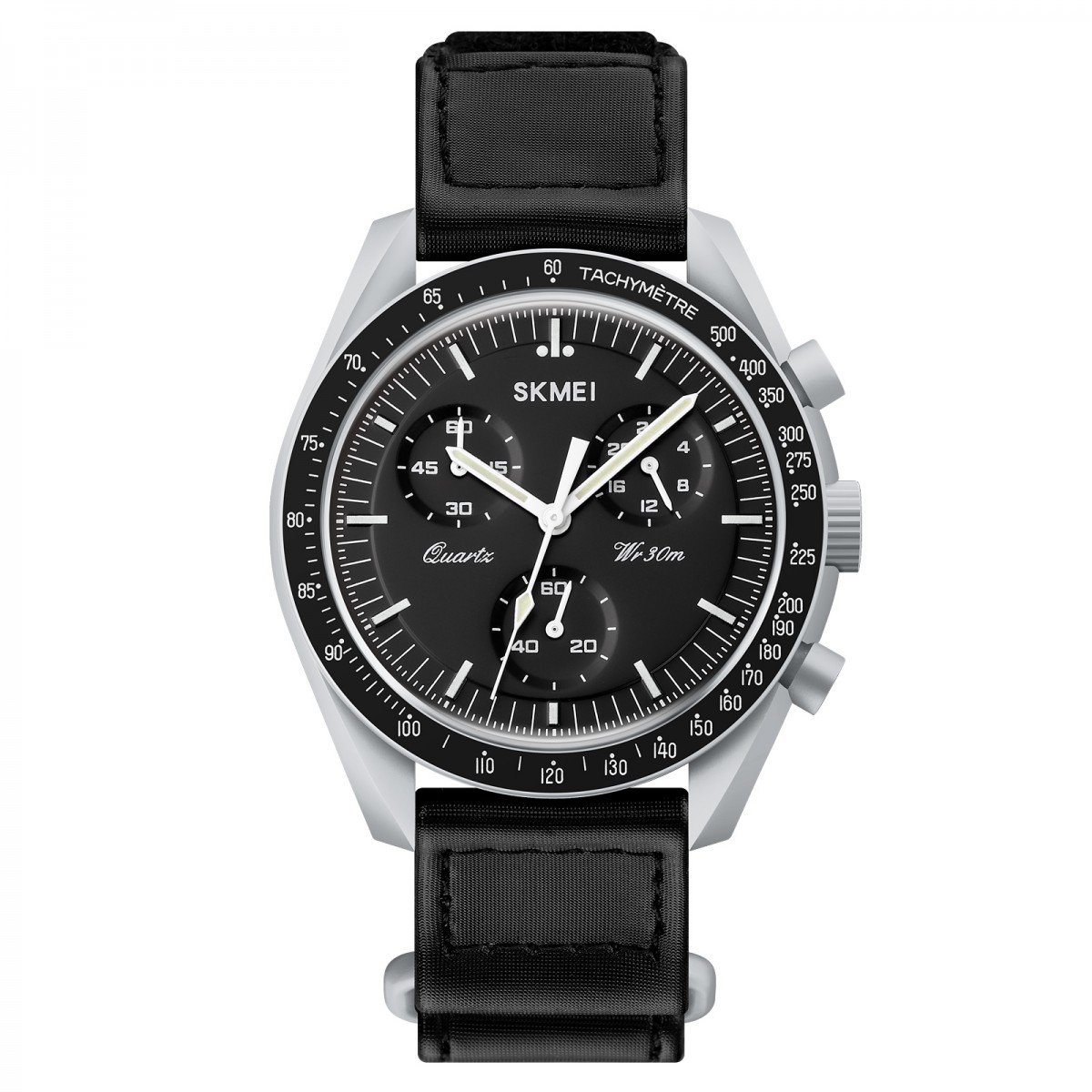 Часы Skmei 1982GYBK Grey-Black – стильный мужской аксессуар, сочетающий в себе функциональность и элегантность. Корпус выполнен из прочного поликарбоната серебристого цвета, а ремешок из черного нейлона обеспечивает комфорт при ношении. Часы имеют классическую застежку и стрелочный циферблат с арабскими цифрами и индексами, что позволяет легко считывать время.