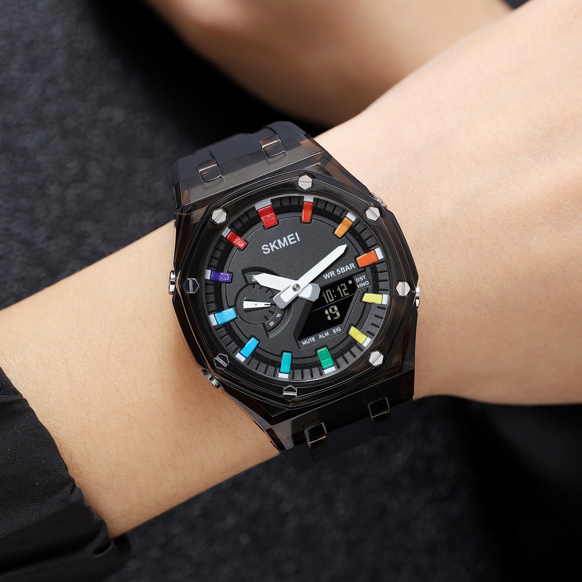 Благодаря кварцевому механизму и стрелочно-электронному циферблату, вы всегда будете в курсе времени. Часы имеют светодиодную подсветку, функции будильника, таймера и второго часового пояса.