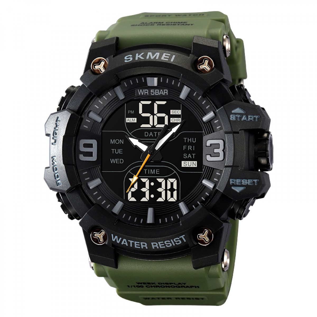 Часы Skmei 2222AG Army Green – идеальный выбор для активных мужчин, которые ценят стиль и функциональность. Эти спортивные часы с диаметром корпуса 60 мм и весом всего 65 г отличаются выносливостью благодаря своему пластиковому корпусу и каучуковому ремешку.