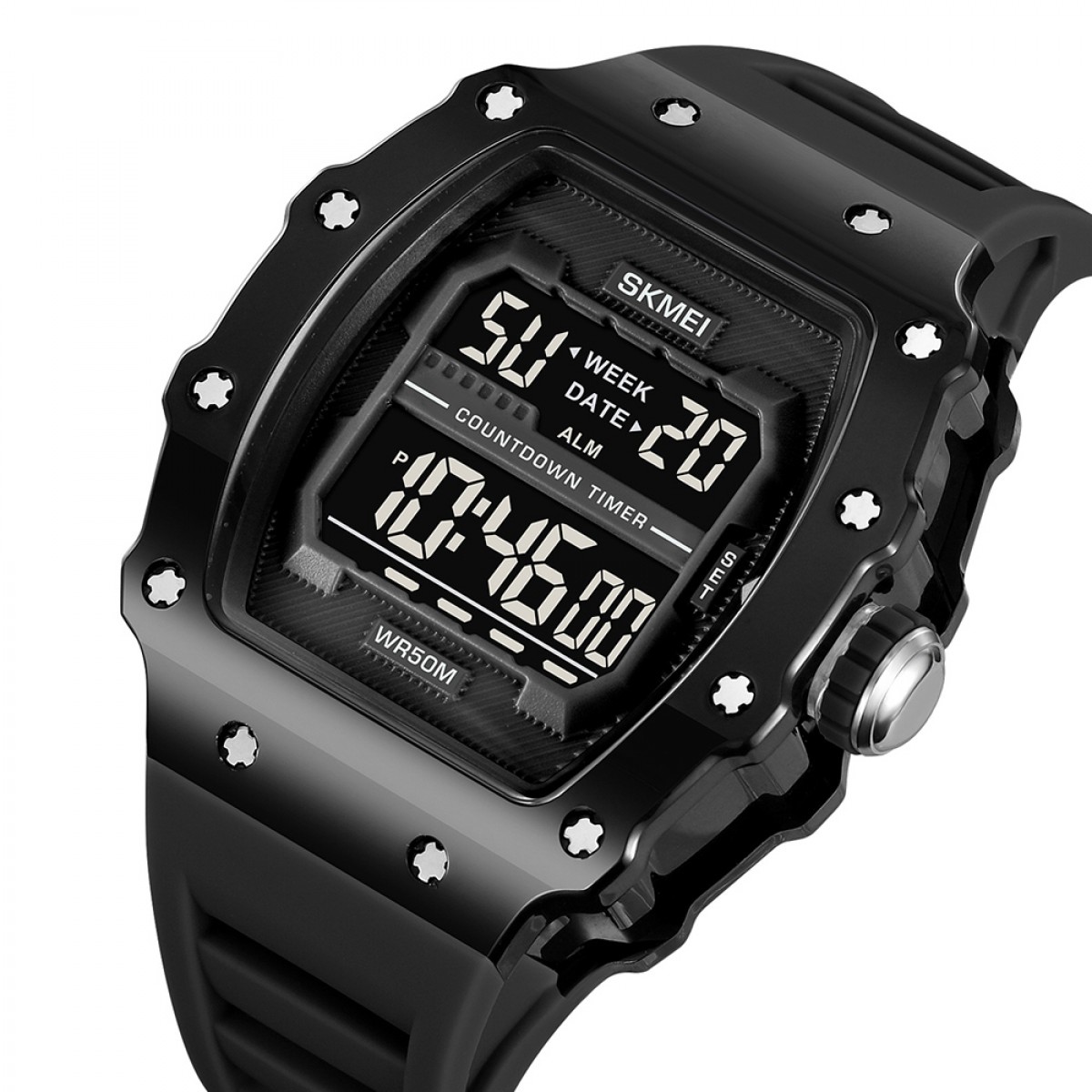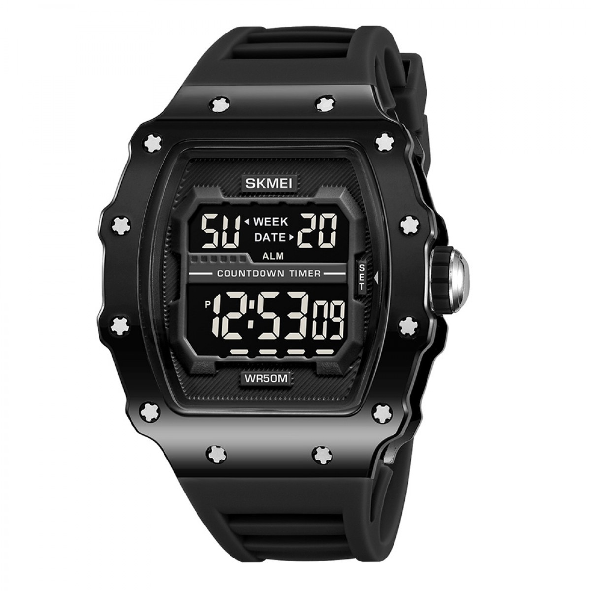 Часы Skmei 2296BTBKBK Bright Black – это современный мужской аксессуар со спортивным и casual стилем. Выполненный из полиуретана и силикона он обеспечивает водонепроницаемость до 50 м. У модели есть электронный механизм и электронный циферблат с арабскими цифрами. Функции включают будильник, календарь, второй часовой пояс и секундомер. Часы оборудованы электролюминесцентной подсветкой для удобства использования в темноте. Дополнительные характеристики: размеры корпуса 44,3х52 мм, длина ремешка 24 см и ширина 25 см. Гарантия на устройство составляет 12 месяцев. Изготовлено в Китае, вес часов составляет 64 г.